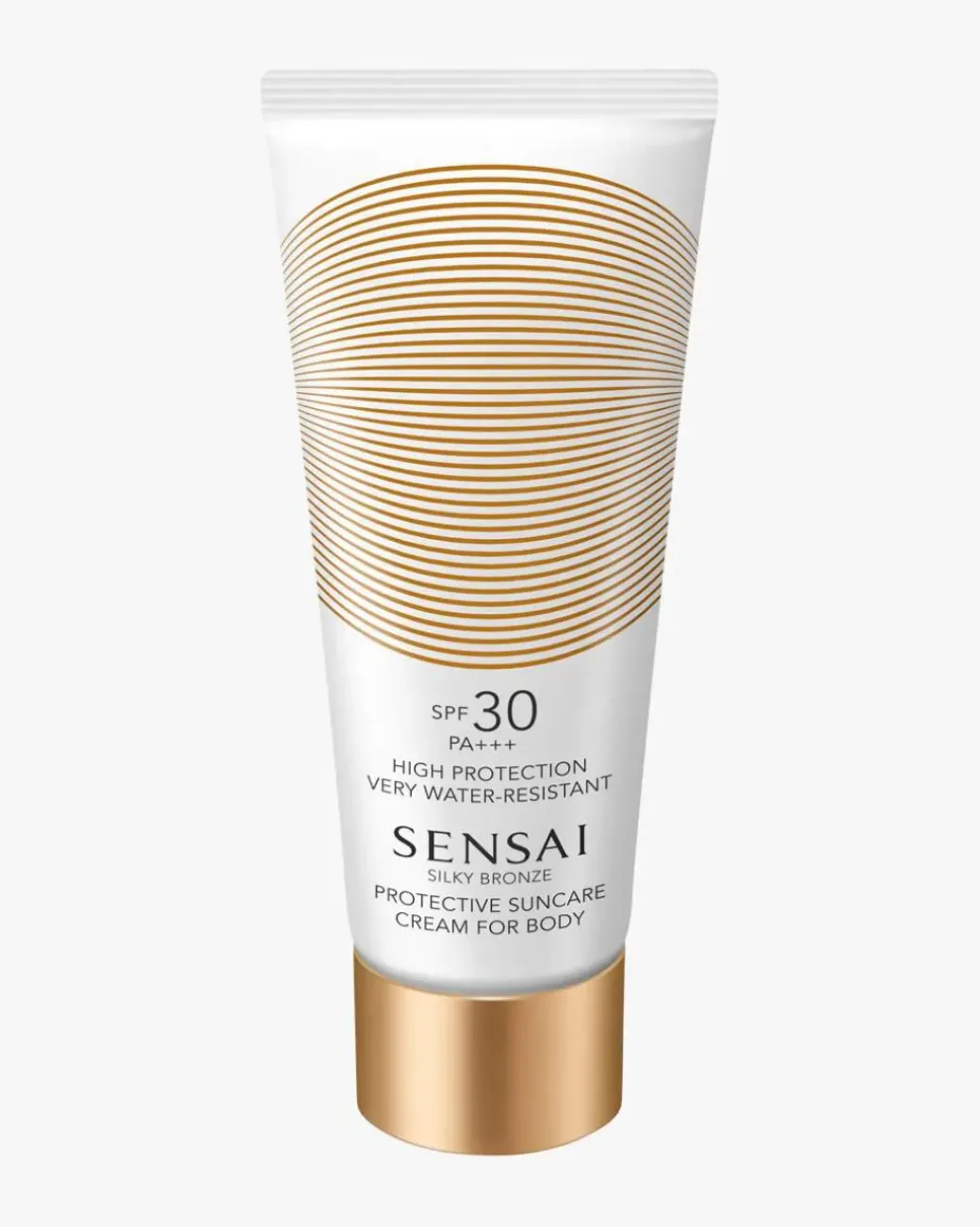 Sensai Silky Bronze Protective Suncare Cream for Body SPF 30 er en vannresistent og anti-ageing solkrem til kroppen. Den gir UVA/UVB-beskyttelse ved soleksponering, og huden beskyttes mot umiddelbar og sen skade forårsaket av UV-stråler. Formelen absorberes raskt, har en transparent finish og inneholder aktive stoffer som beskytter huden mot aldringstegn. Solkremen er også motstandsdyktig mot friksjon, noe som sørger for at den høye beskyttelsen holder seg på plass mens du nyter sommersolen.