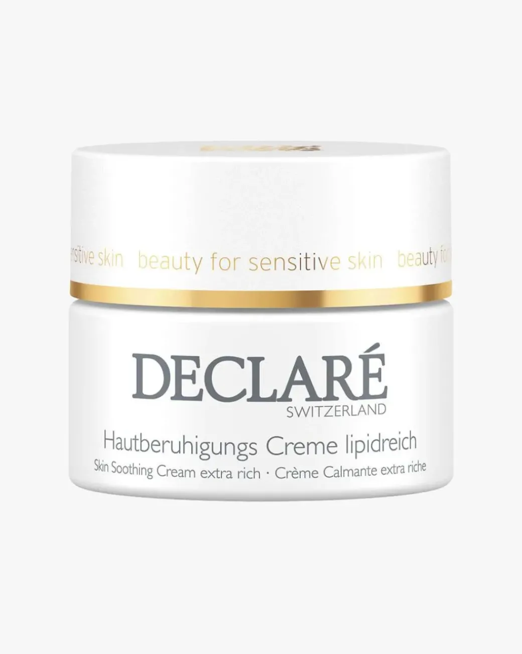 Declare Skin Soothing Cream extra rich. Denne rike SOS kremen styrker hudens evne til å holde på fuktigheten og virker mykgjørende og balanserende. Kremen motvirker tørr og stram hud, og reduserer samtidig rødhet. Huden vil føles myk og få en jevn hudtone.