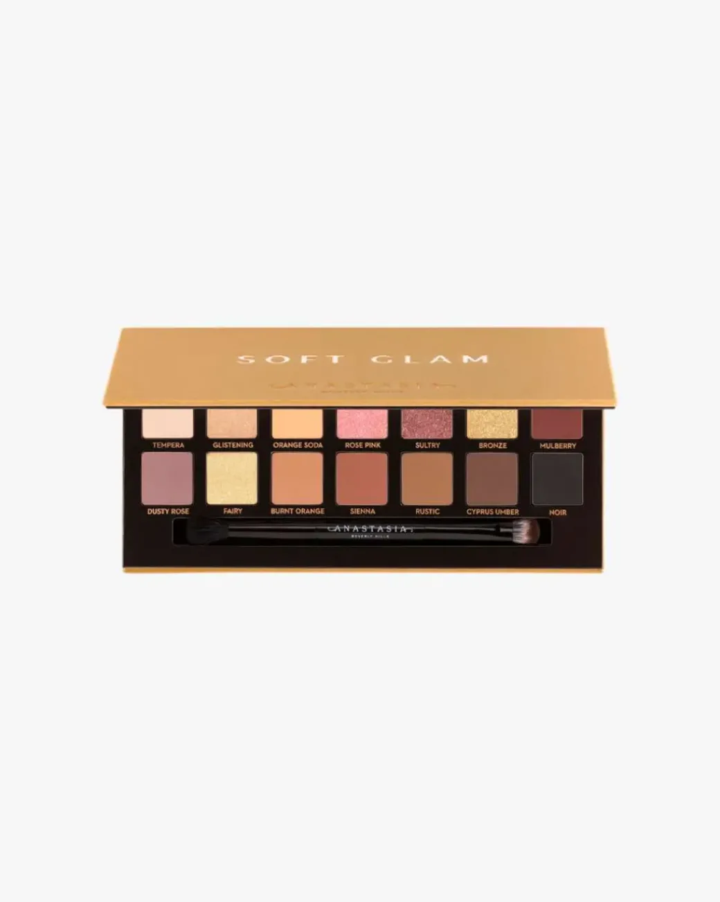 Anastasia Beverly Hills Soft Glam Eye Shadow Palette er en palett med fjorten skygger egnet for dag og kveld, med både matte basisskygger og glamorøse, skimrende nyanser.