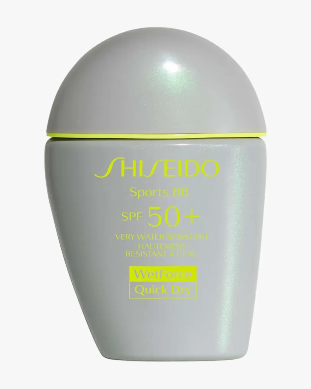 Shiseido Sports BB Cream SPF50 er en UV-beskyttende BB krem i en praktisk format. Den gir fuktighet, beskytter huden mot UV-stråler og holder seg tørr og fri for svette under treningen. Huden ser naturlig ut, sunn og definert og hudens urenheter er mindre synlige. Den varer i hele dagen, selv i solen. Den gir huden fuktighet samtidig som den beskytter. Rist godt kremen før bruk for å blende formulaen, og påfør jevnt på hele ansiktet for en jevn resultat.