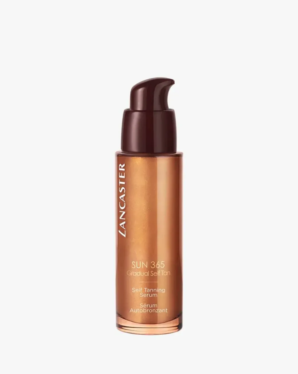 Lancaster Sun 365 Gradual Self Tanning Serum bygger gradvis opp en naturlig brunfarge, dag etter dag. Ansiktserumet inneholder ‘Tan Activator Complex’ som stimulerer den naturlige melaninproduksjonen i huden, og forbereder samtidig huden på første soleksponering. Serumet inneholder antioksidanter, og et fuktighetsgivende kompleks som bygger fuktighet både umiddelbart og over tid. Serumet inneholder også perlemor som gir huden en umiddelbar naturlig og sunn glød.