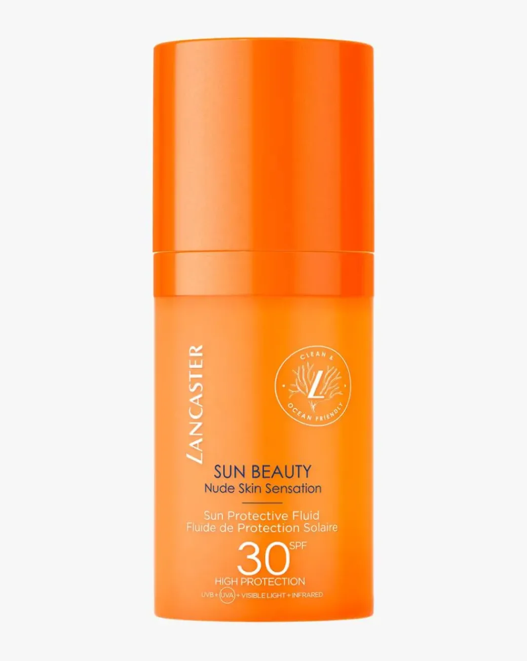 Lancaster Sun Care Face Face Fluid Cream SPF30 er en ny og ultralett solkrem, som gir effektiv beskyttelse til ansiktet uten at du ser eller føler den på huden. Denne rene og miljøvennlige solkrem dekker 100% av solspekteret*, samtidig som den bidrar til å reparere eksisterende solskader og gir deg en herlig sanseopplevelse. Solkremen er praktisk, lett å bruke og gir deg en sunn, solkysset glød dobbelt så raskt som hvis du oppholdt deg i solen**.