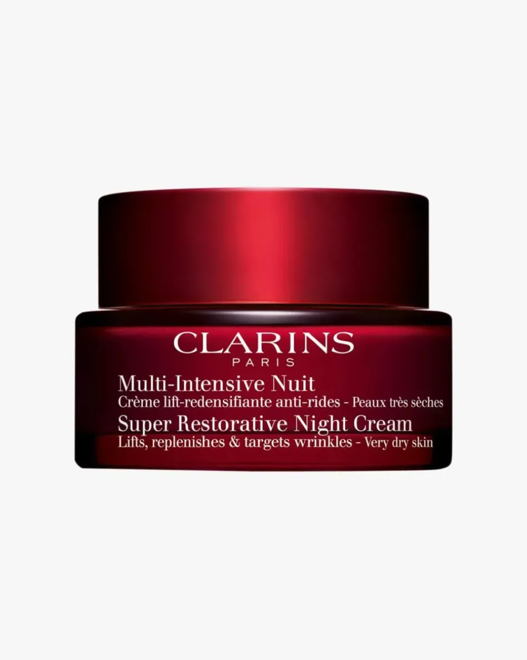 Clarins Super Restorative Night Cream Dry Skin er for alle kvinner i begynnelsen av 50-årene som har fått hormonelle endringer i huden som følge av aldring, og som opplever at huden har mistet spenst, fått dypere linjer og ujevn hudtone. Passer tørr hud.
