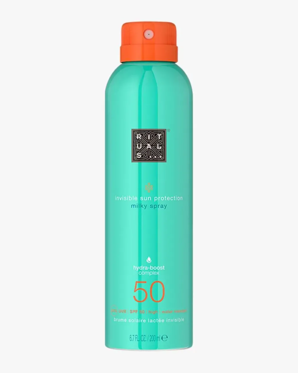 Rituals The Ritual of Karma Sun Protection Milky Spray SPF 50 er en fuktighetsgivende lotion spray med SPF 50 som ikke etterlater hvite flekker, og absorberes raskt av huden uten å bli klebrig. Kroppen din beskyttes mot solskader fra UVA- og UVB-stråler og tilføres næring i én enkelt påføring takket være Hydra-Boost Complex. Dette unike fuktighetsgivende komplekset inneholder squalane, aloe vera og alger, som alle er kjent for å bidra til å lindre dehydrert hud og gjenopprette smidighet. Lotion sprayen gir usynlig, konsistent og bredspektret beskyttelse. Beriket med hvit te, E-vitamin og lotusblomst.