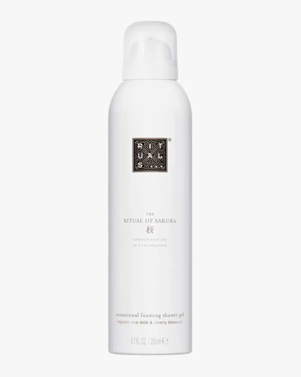 Rituals The Ritual of Sakura Foaming Shower Gel. Gi huden din en ny start med dette dusjskummet fra The Ritual of Sakura. En unik teknologi forvandler geléen til et silkemykt renseskum, beriket med den fornyende blandingen av kirsebærblomst og rismelk. Den blomsteraktige duften åpner opp med myke, melkeaktige undernoter som etterfølges av friske, sitrusaktige grønne noter. Duften går deretter over til en harmonisk blanding av søte kirsebær og fortryllende, florale hint. Feir hver dag som en ny start ved å kombinere den med den rike og eksklusive kroppskremen fra samme serie.