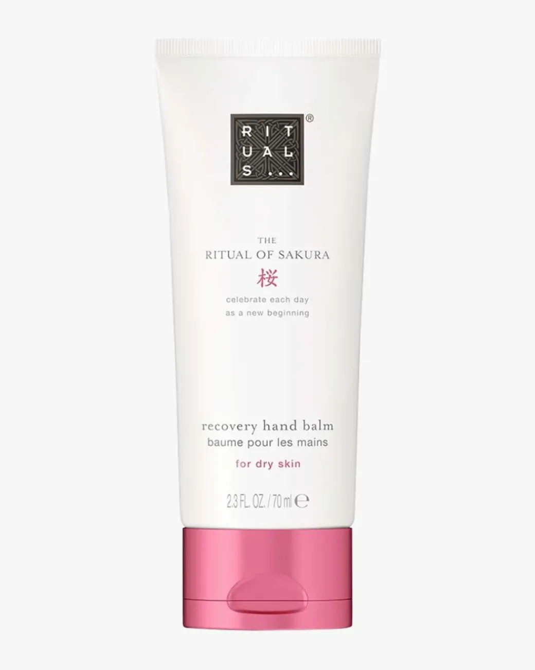 Rituals The Ritual of Sakura Recovery Hand Balm. Denne rike og eksklusive håndbalmen er spesielt utviklet for å berolige og nære huden. Den reparerende håndbalmen er spesielt utviklet for tørre hender, og inneholder effektive mikrobiomvennlige aktive ingredienser som styrker hudbarrieren og holder huden balansert og sunn. Rismelk gjør huden myk og smidig, mens kirsebærblomst gir en herlig søt aroma.