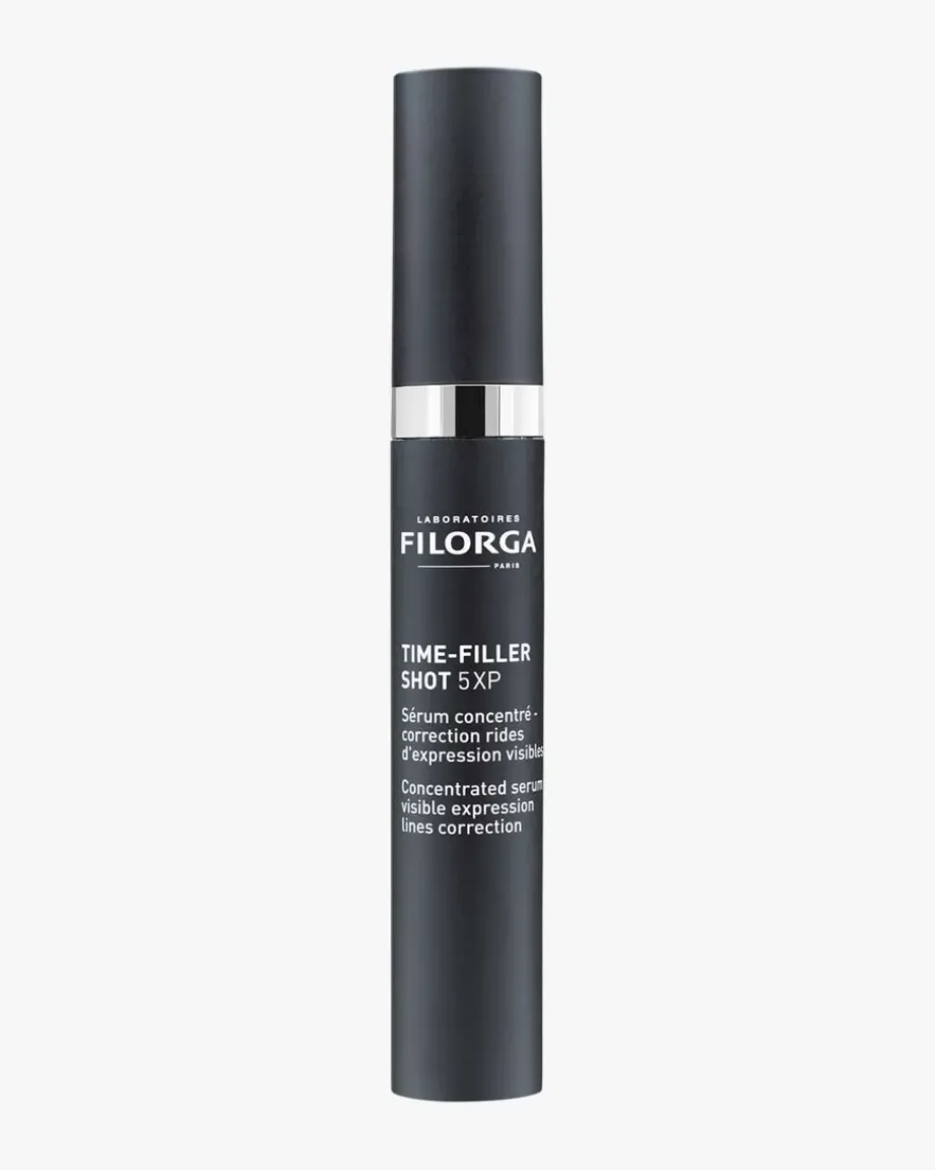 Filorga Time-Filler Shot 5XP er et konsentrert serum som korrigerer og motvirker rynker og uttrykkslinjer. Serumet inneholder en høykonsentrert formel (60% aktive ingredienser) med nevropeptider som har en avslappende effekt på huden, og reduserer synligheten av fem forskjellige rynker og linjer forårsaket av gjentatte bevegelser av ansiktsmusklene. Pannenrynker, bekymringslinjer, latterlinjer (kråketær), rynker på overleppen og hengende munnviker (marionettlinjer) føles mindre fremtredende* og ansiktstrekk ser mer avslappet ut på bare syv dager**. Serumets kjølende metallapplikator gjør at du kan påføre formelen med presisjon – for effektiv punktbehandling med optimale resultater. Resultatet er fastere og jevnere hud med færre fremtredende rynker og linjer.