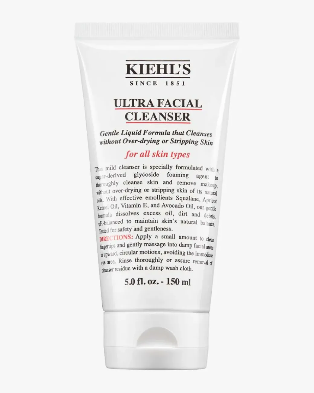 Kiehl’s Ultra Facial Cleanser. Denne milde, pH-balanserte flytende rensen produserer et rikt skum som renser huden for overflødig olje, skitt og rusk uten å tørke ut huden. Mild formel for alle hudtyper.