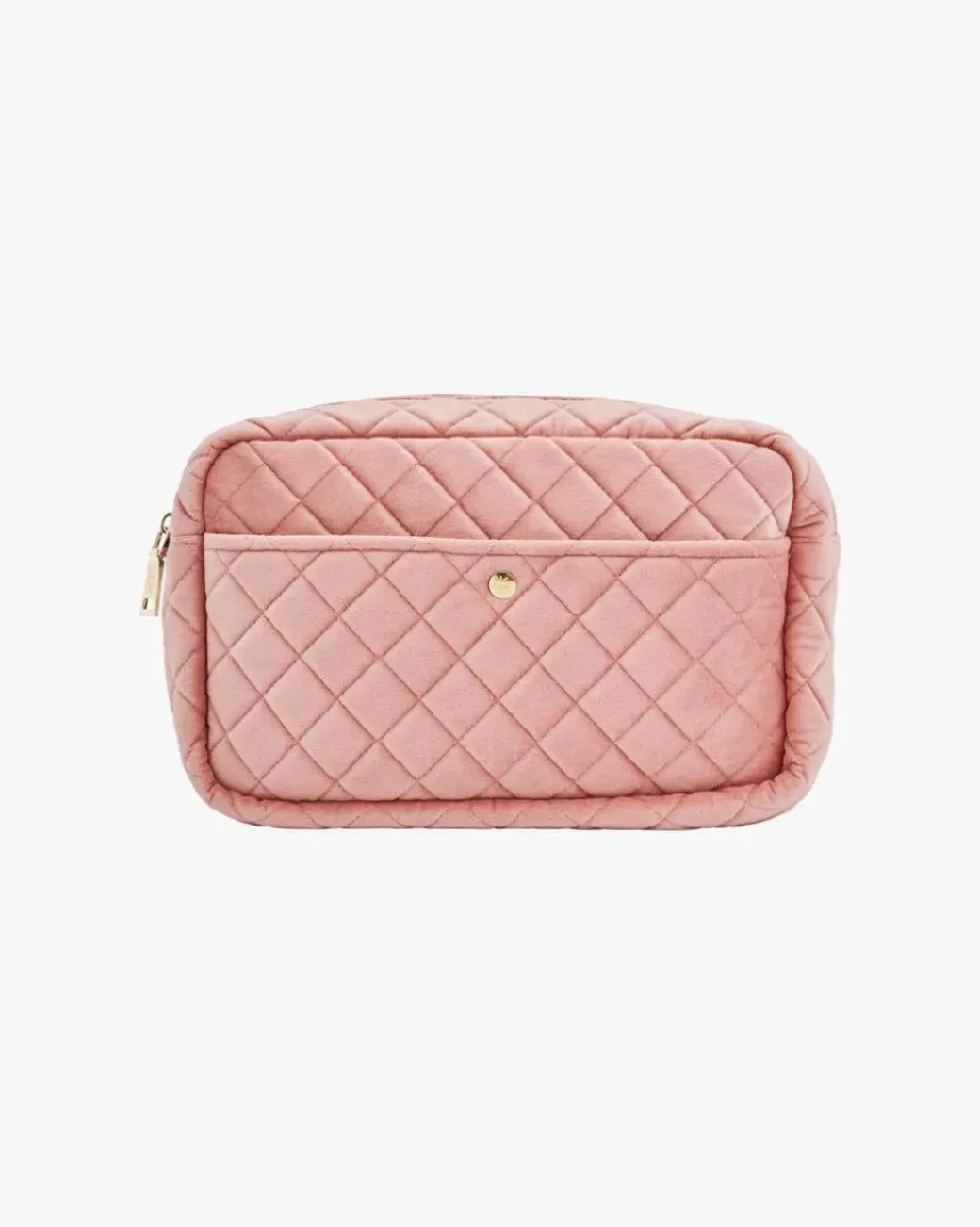 Fan Palm Rose Velvet Large Beauty Bag er en myk skjønnhetsveske i vattert fløyel eller bomull. Noen er ideelle for reiser, og andre for hjemmebruk. De er alle fantastiske med plass til sjampo, børster, kosmetikk og kremer – og alle slags eventyr.