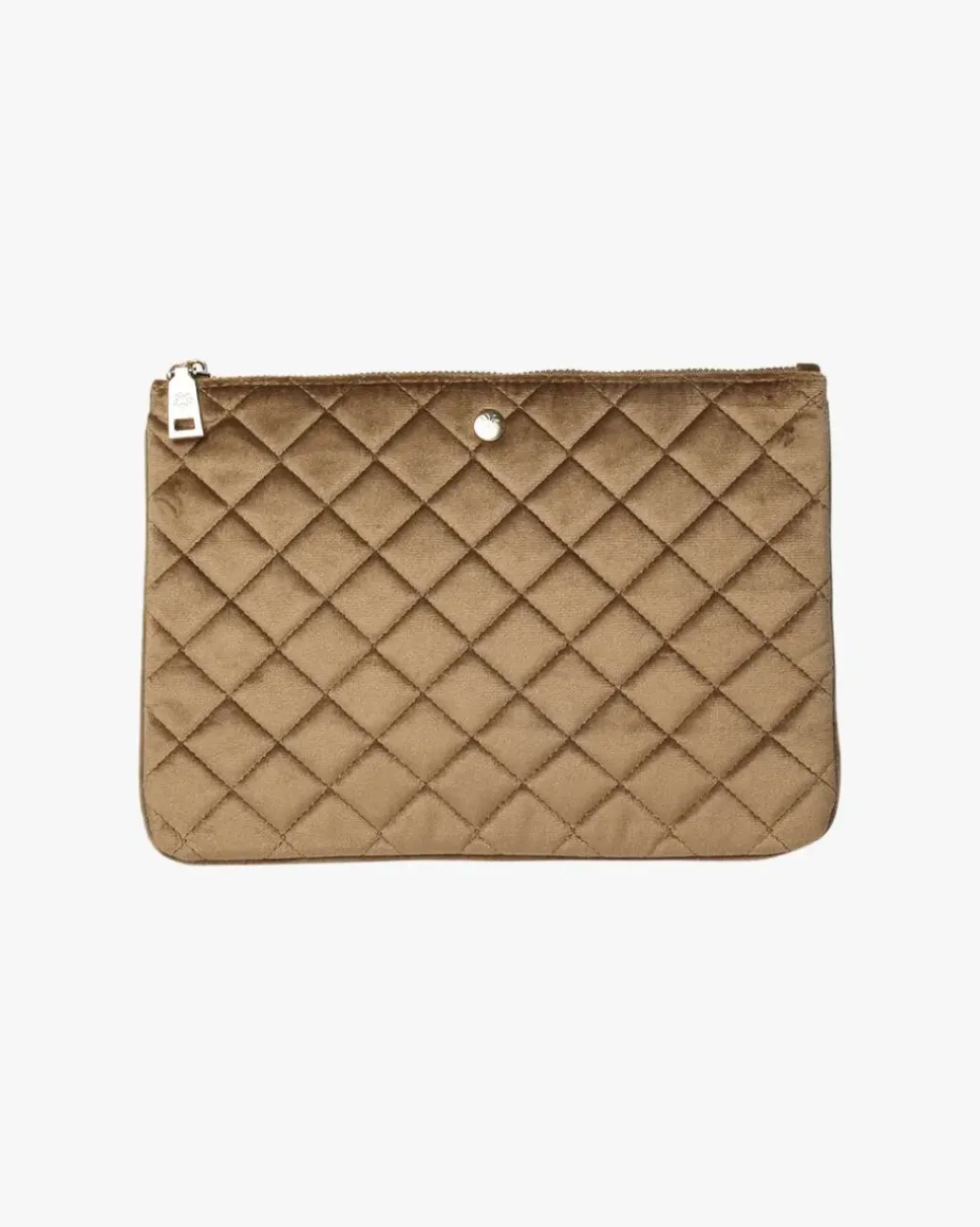 Fan Palm Hazelnut Velvet Clutch er et vakkert valg for telefonen din, sminke, nøkler, penger og alt annet du har i nærheten.