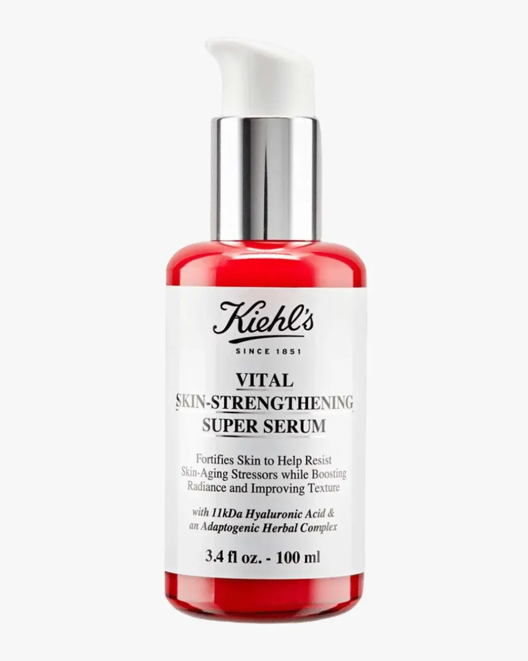 Kiehl’s Vital Skin-Strengthening Super Serum er et serum som gir nytt liv til matt, sliten og stresset hud. Dette styrkende serumet trenger fort inn i huden og korrigerer for tidlige aldringstegn som fine linjer, rødhet og tørr hud. Kiehl’s kjemiker har spesialutviklet et Adaptogenic Herbal Complex, som består av homøopatiske super foods, som ginseng, tulsi og schizandrabær, som gir nytt liv til huden. Kiehl’s Adaptogenic Herbal Complex kombineres med 11kDa-hyaluronsyre for raske og effektive resultater.