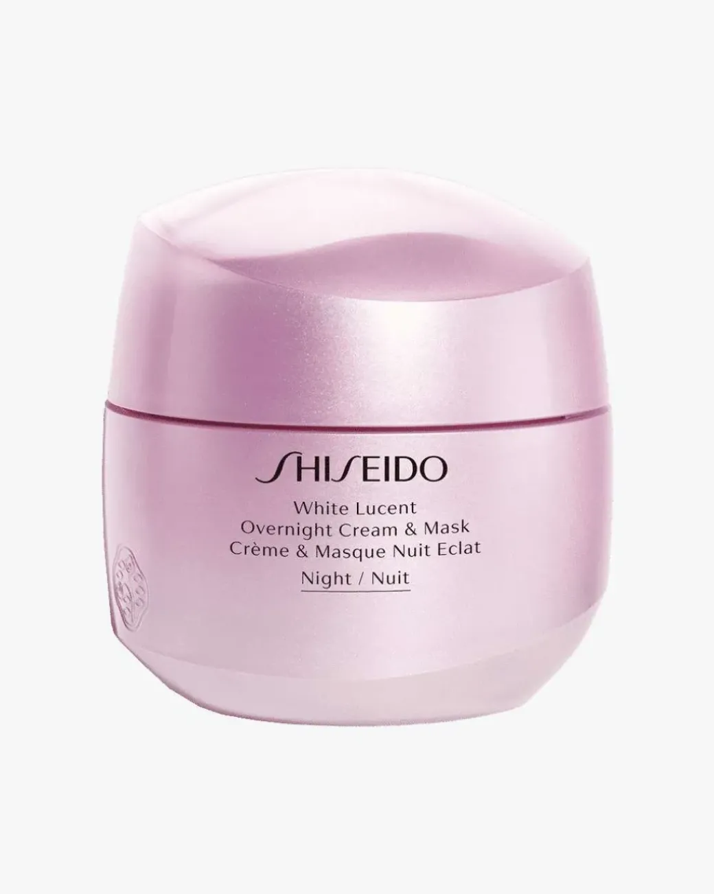 Shiseido White Lucent Overnight Cream & Mask er en silkemyk nattkrem som øker hudens følsomhet samtidig som den gir glød. Du våkner med en jevnere og klarere hud. Den hemmer overdreven melanin produksjon, forebygger pigmentflekker og ujevn hudtone, og reparer hudskader som oppstår i løpet av dagen. Bruk som siste steg i din kveldsrutine. Når du ønsker å bruke White Lucent Overnight Cream & Mask som maske, påfør kremen i en tykkere lag over hele ansiktet enn hvis du hadde brukt den som nattkrem.
