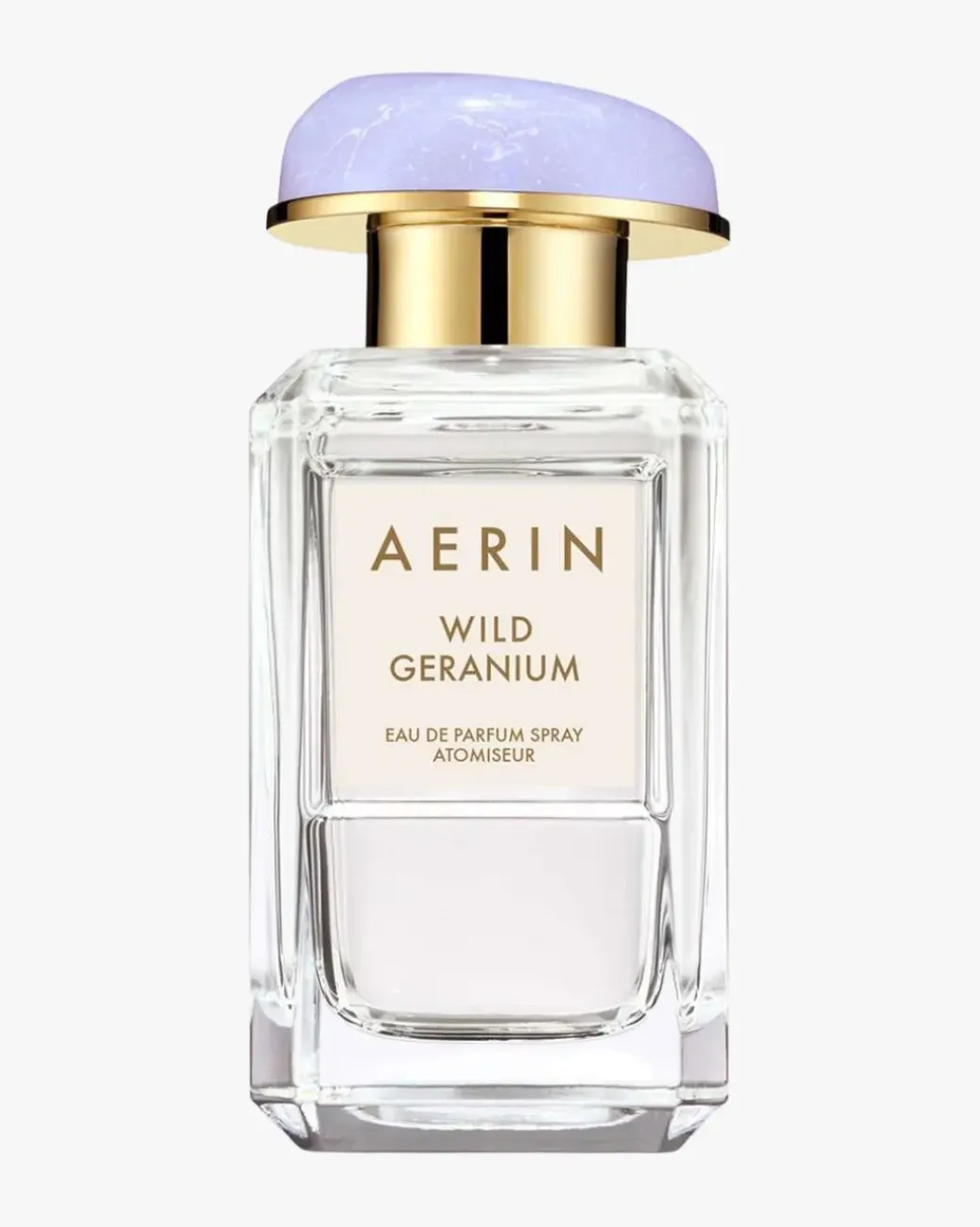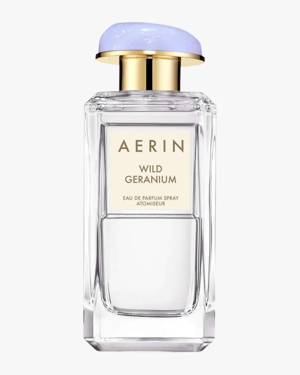 Aerins Wild Geranium Eau de Parfum inneholder frisk geraniumnote og et glitrende streif av rosépepper, sandvåner leder deg inn i en fortryllende blomsterlabyrint. Duftens toppnoter: Geranium, rosépepper og Sitron. Hjertenoter: Hvit Peon, Appelsinblomst og Påskelilje. Bunnnoter: Tuberose, Rosa Centifolia, Ambroxan og Benzoharpiks.