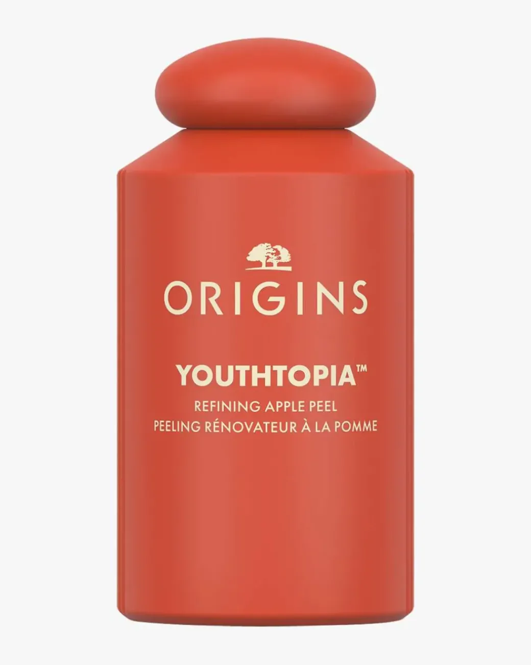 Origins Youthtopia™ Refining Apple Peel eksfolierer huden og foredler porene synlig for et superglatt, polert utseende. Den gir også huden mer fylde og øyeblikkelig fuktighet.