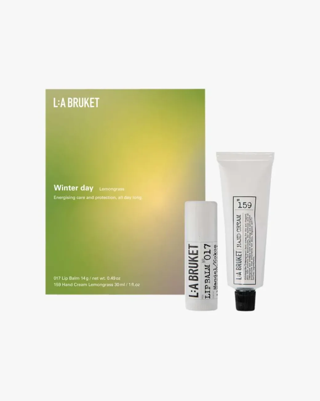 L:A Bruket 2024 Winter Day Lemongrass. Et luksuriøst gavesett som kombinerer pleie og aromatisk nytelse!
