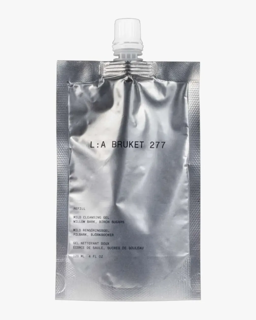 L:A Bruket 277 Mild Cleansing Gel Refill er en refill for 277 Mild Cleansing Gel, en naturlig rens fra L:a Bruket som fjerner giftstoffer, svette og forurensningspartikler. Den foredler hudens tekstur og hjelper til med å regulere talgproduksjonen, uten å tørke ut huden. Dypt og skånsomt renset, huden er smidig og beroliget.