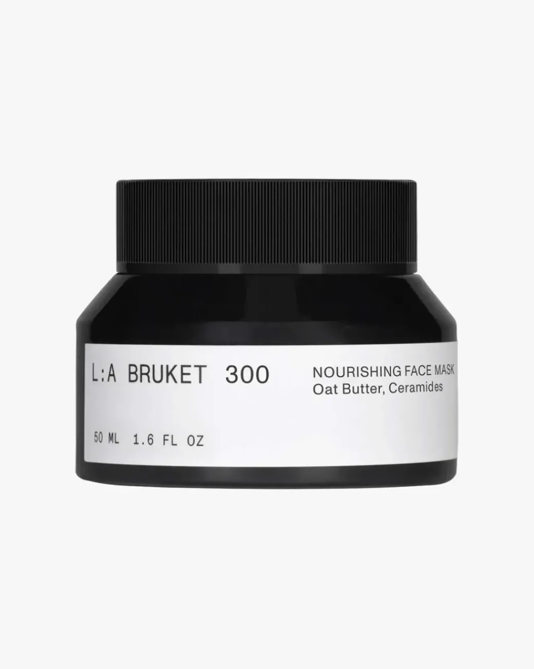 L:A Bruket 300 Nourishing Face Mask er en intenst fuktighetsgivende nærende ansiktsmaske for alle hudtyper som gir umiddelbar fuktighet og lindring av tørrhet. Ingrediensene jobber forent for å tilføre fuktighet og låse den inn ved å styrke hudbarrieren for bedre fuktighetsbevaring og beskyttelse. Vil forbedre lipidbarrieren for langsiktige resultater med reduserte fine linjer og gjenopprettet smidighet. Nourishing Face Mask gir en sunn glød og beskytter huden mot ytre påvirkning.