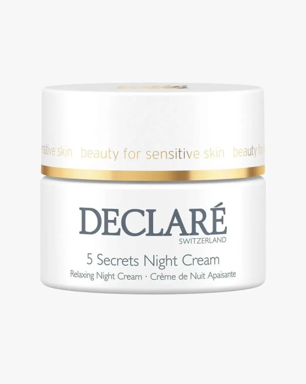 Declare 5 Secrets Night Cream roer ned en stresset hud, styrker hudens barriere og øker toleransen for ytre påvirkninger. Fine linjer og rynker reduseres. Lett konsistens som absorberer raskt.