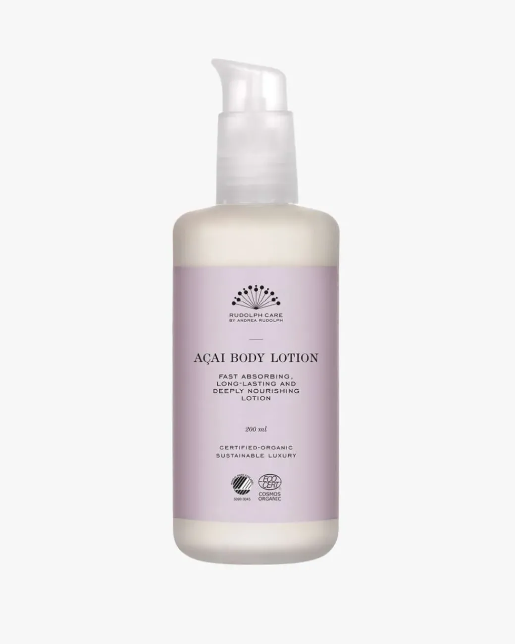 Rudolph Care Acai Body Lotion er rik på bløtgjørende og aktive ingredienser. Selv om den har et høyt innhold av oljer og fettstoffer, føles den superlett og trekker raskt inn i huden. Du får best resultat hvis du bruker noen sekunder på å varme produktet mellom hendene og massere det inn i huden. Da vil den trenge dypt inn i huden og reparere ev. tørr hud i stedet for bare å legge seg på overflaten. Body Lotion kan brukes på både følsom, tørr, irritert og eksemhud.