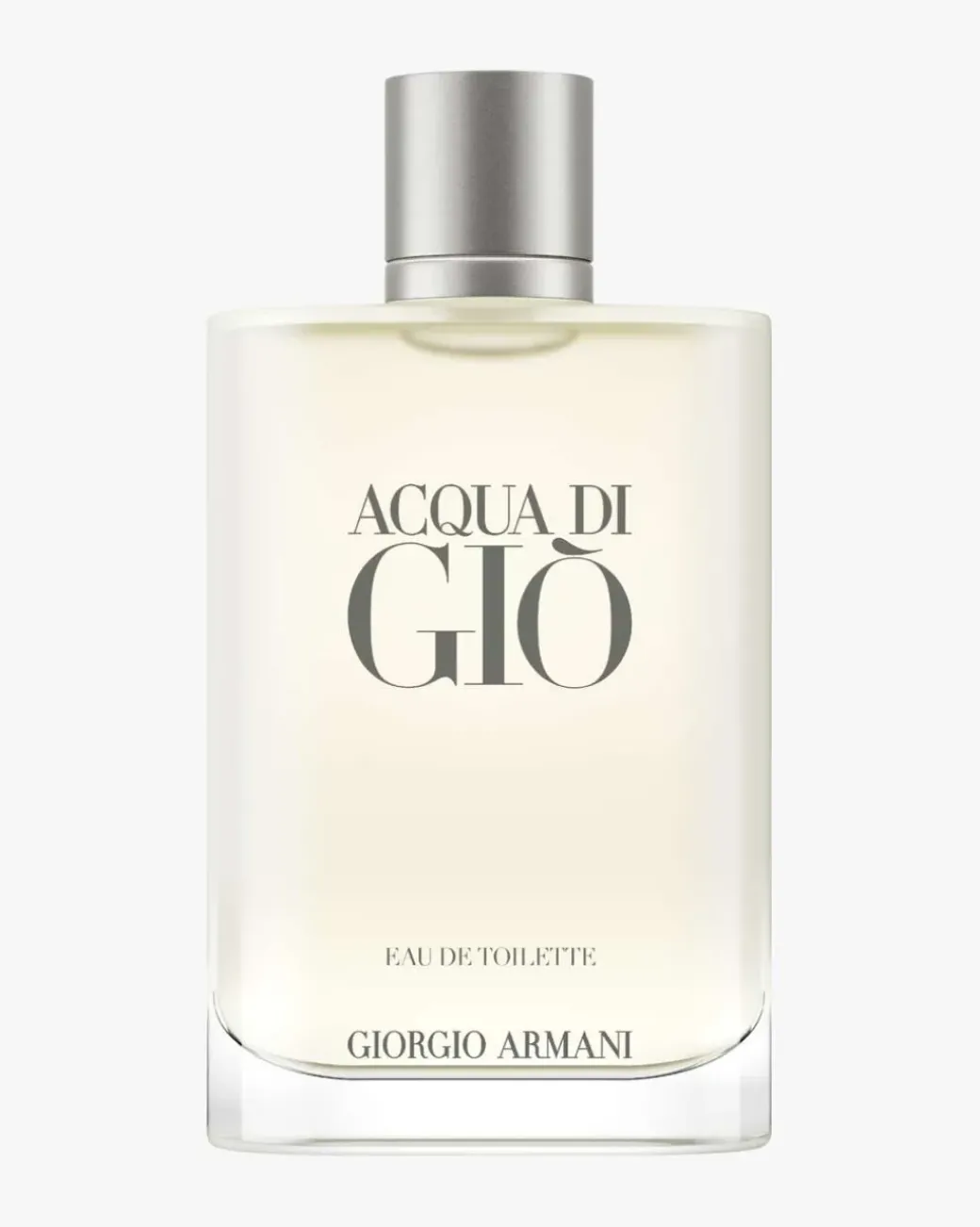 Giorgio Armani Acqua di Giò Eau de Toilette er en frisk og akvatisk duft som fanger havets fulle kraft i en ikonisk etterfyllbar flaske i et krystallklart og frostet transparent glass. Armanis Acqua di Giò Eau de Toilette er skapt for den moderne oppdagelsesreisende, som ønsker å fordype seg i en reise med uendelige muligheter og fange essensen av selvtillit, raffinement og ville eventyr. Den akvatiske og rene duften åpner med frisk bergamott fra Calabria, neroli og grønn mandarin. De lette, akvatiske nyansene blandes med duften av sjasmin, frisk soløye, rosmarin, fruktig sharonfrukt og varm indonesisk patsjuli, som sammen gir en herreduft som er både frisk og sensuell.