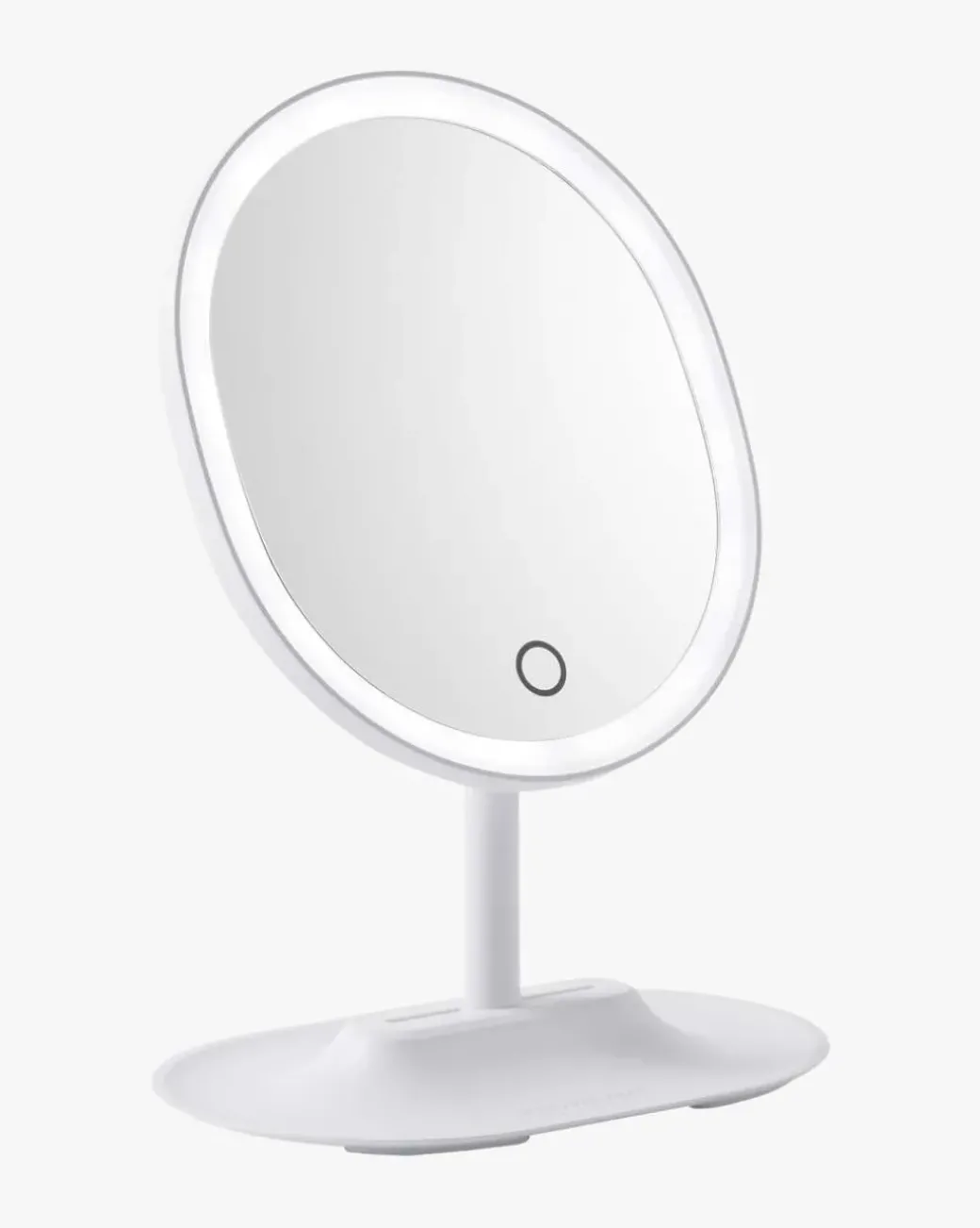 Browgame Advanced Original Lighted Makeup Mirror. De lyse, myke og justerbare LED-lysene, gir perfekt optimal lysstyrke og fargegjengivelse for å perfeksjonere ditt «brow game». Lysintensiteten kan justeres til dine egne preferanser, med en berøringsskjermbryter på speiloverflaten. Med Advanced Lighted Makeup Mirror kan du også velge mellom varmt og kaldt lys. Inkludert er et magnetisk 5x forstørrelsespeil, som kan plasseres midt i speilet, slik at du enkelt kan nappe øyenbrynene og sminke deg.