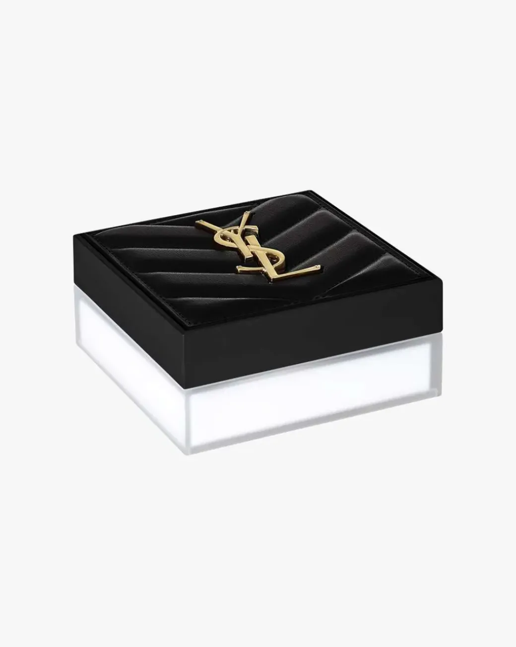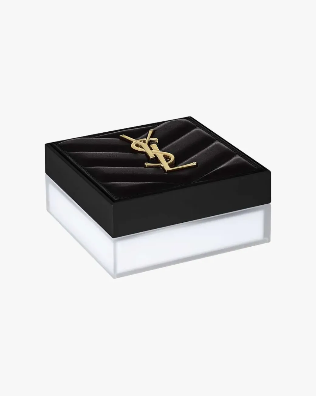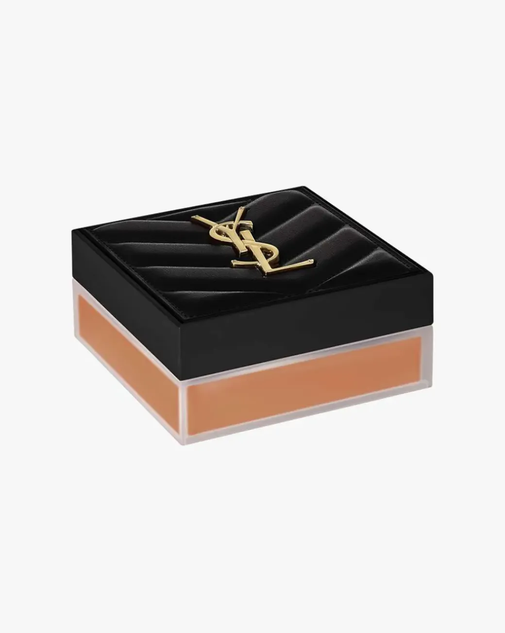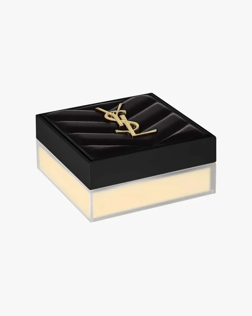 Gjennomsiktig frostet krukke og chevronsil design tilbyr en optimal formel pick-up. Emballasjen har en YSL Couture signatur chevron-skinntopp og 3mm gull kasandre. Ultra luftig og myk puff-applikator sikrer optimal oppsamling av formelen, soft touch-påføring, enkel hudfeste og blanding som gir en sømløs makeup-finish.