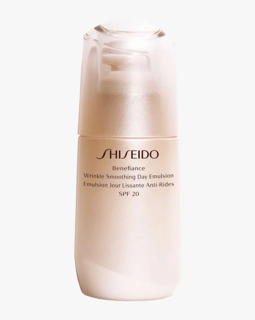 Shiseido Benefiance Wrinkle Smoothing Day Emulsion er en myk anti-rynke emulsjon som gjenoppretter dyp fuktighet i huden samt plumper tørrhetslinjer. Etter påføring vil huden umiddelbart føles jevnere, plumpet og mer oppstrammet i tillegg til at kremen forebygger mot rynker.