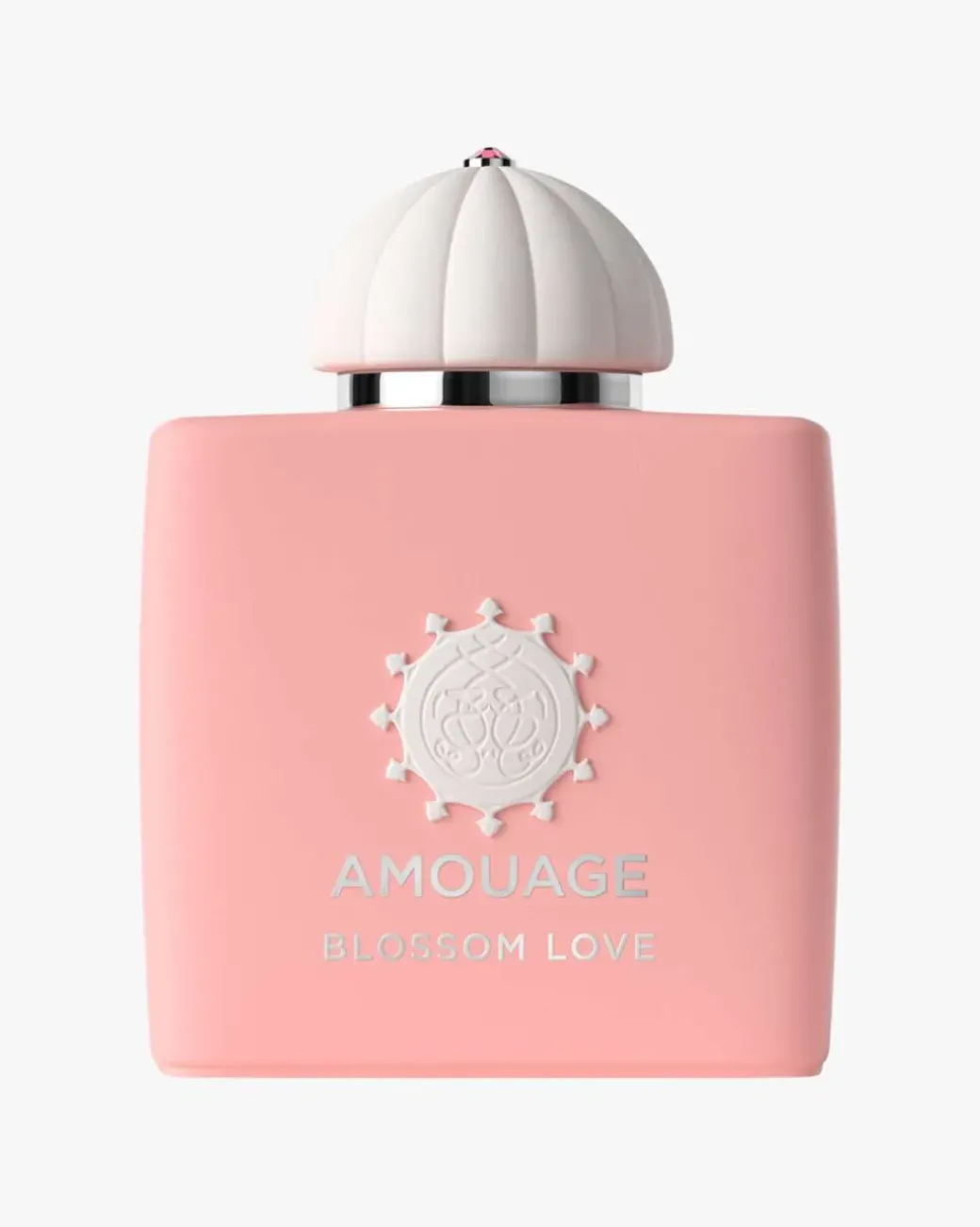 Amouage Blossom Love Woman Eau de Parfum. Kirsebærblomstnektarens uskyldige kjærtegn forstørret av den gjennomsiktige skjønnheten til Rose Alcoolate avslører et varmt og romantisk hjerte.