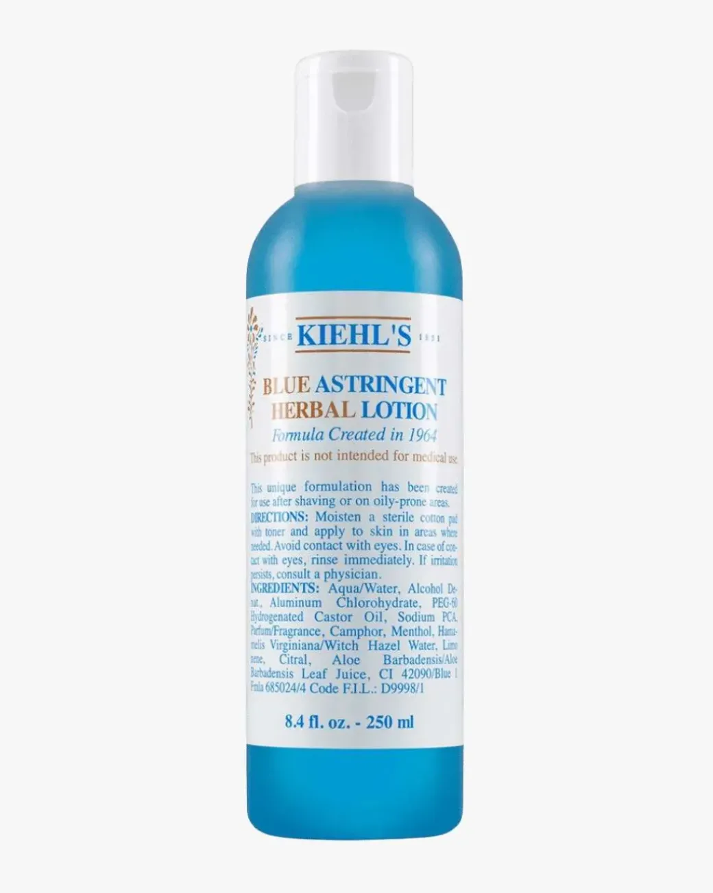 Kiehl’s Blue Astringent Herbal Lotion kontrollerer hudens glansnivå og bidrar til å fjerne urenheter. Toneren vil også virke avkjølende på huden.