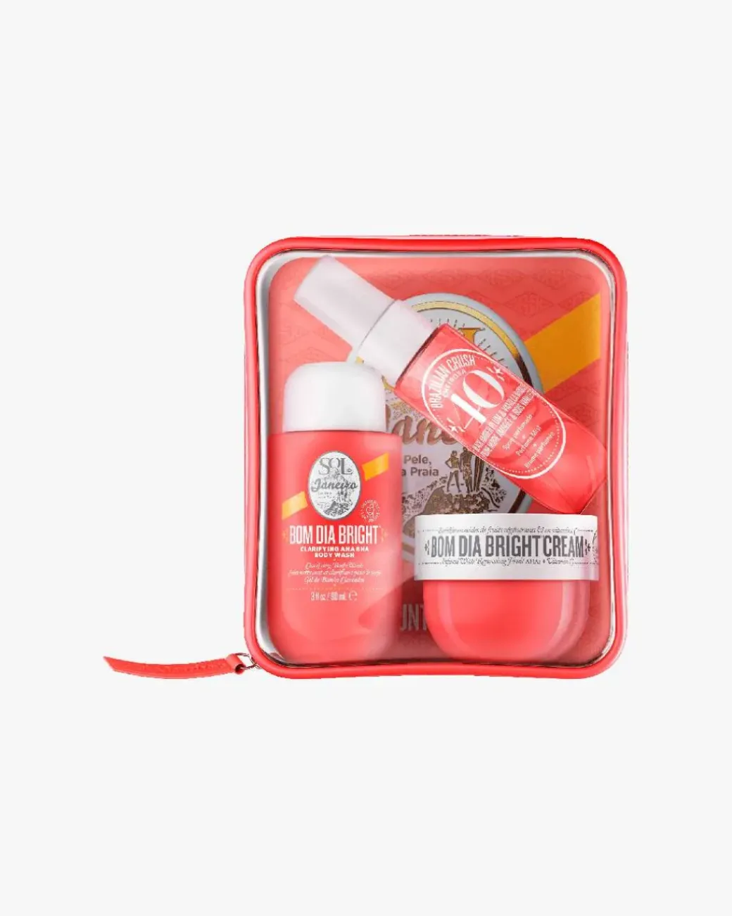 Settet inneholder: Bom Dia Bright Clarifying AHA BHA Body Wash 90ml, Bom Dia Bright Body Cream 50ml og Cheirosa 40 Perfume Mist 30ml.