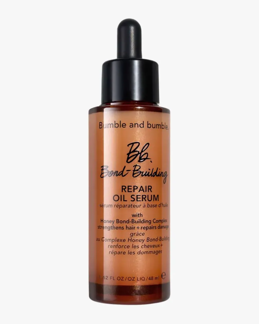 Bumble and bumble Bond-Building Repair Oil Serum er et luksuriøst leave-in olje-serum som gir en transformativ reparasjon fra cortex-til-kutikula og skaper umiddelbart mykere, jevnere, sterkere hår. Drevet av den høyeste konsentrasjonen av Honey Bond-Building Complex, hjelper denne lette styler-hybriden å reversere utseendet til skade forårsaket av varme, kjemisk og fysisk styling. I tillegg glatter den ut, fukter, reduserer frizz og beskytter håret mot varmeverktøy opp til 230°C.