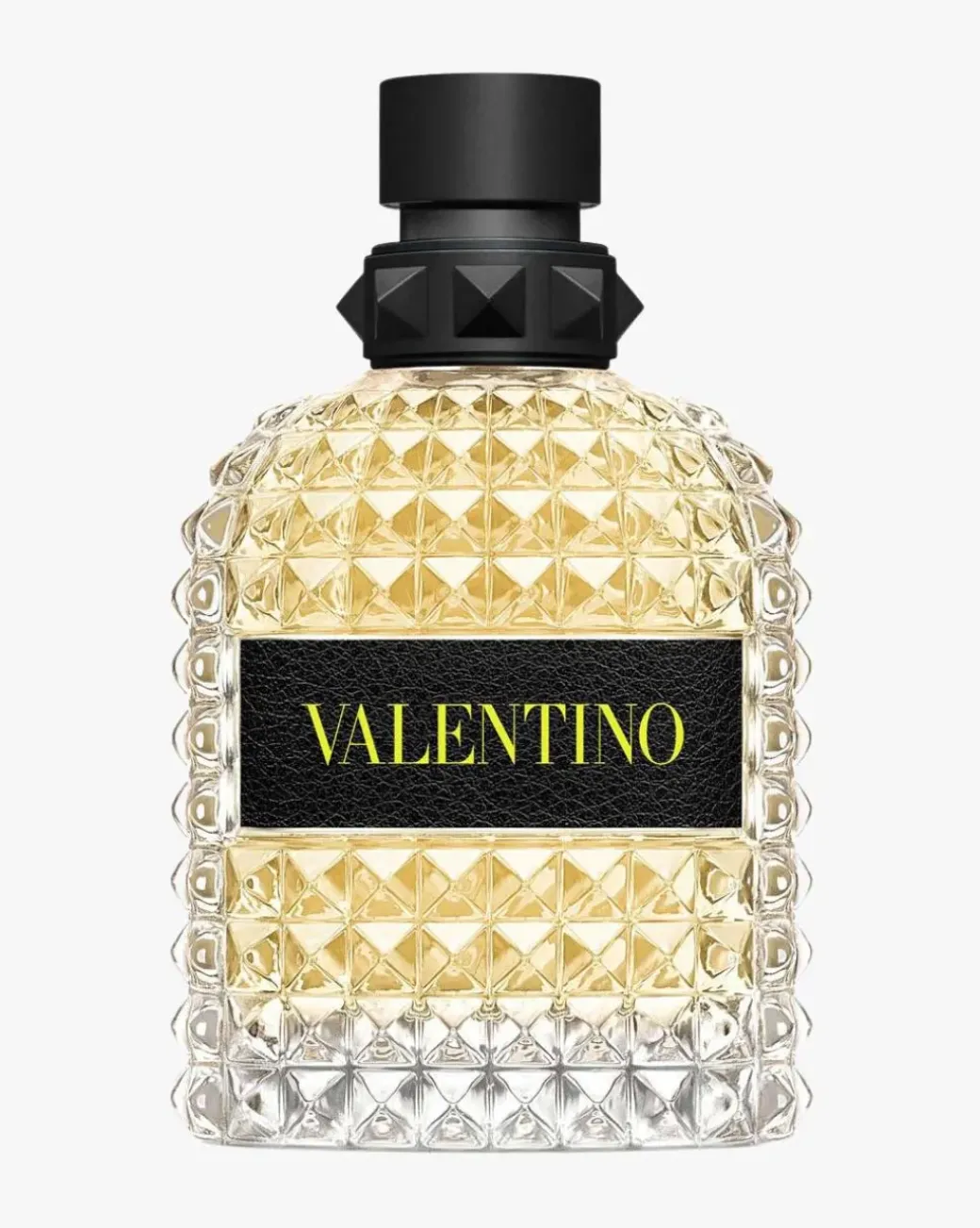 Valentino Uomo Born In Roma Yellow dream Eau de Toilette for Him er utviklet for uredde og kulturinteresserte personer, som lever livet fritt, samtidig som de omfavner sin egen historie. For ham er det en frisk orientalsk duft, bygd rundt en spenning bestående av eksotisk friskhet kombinert med en sensuell og sprø akkord av pepperkake. Toppnote: en frisk og eksotisk vri på en saftig italiensk mandarin og appelsinakkord, som vekker sansene. Hjertenote: en unik krydret pepperkakeakkord gir duften et uimotståelig orientalsk preg. Bunnote: en strukturert vanilje absolute og sedertre gir en kraftfull, holdbar sensualitet. Flasken er designet med den ikoniske Valentino rockstud, inspirert av romersk arkitektur, og denne lille pyramideformen forvandler en flaske fra klassisk til edgy. Historien bak parfymen startet med en samtale med Valentinos hjemby, Roma. Born In Roma hyller både haute couture og gatekultur som finnes side ved side i Maison Valentinos design.