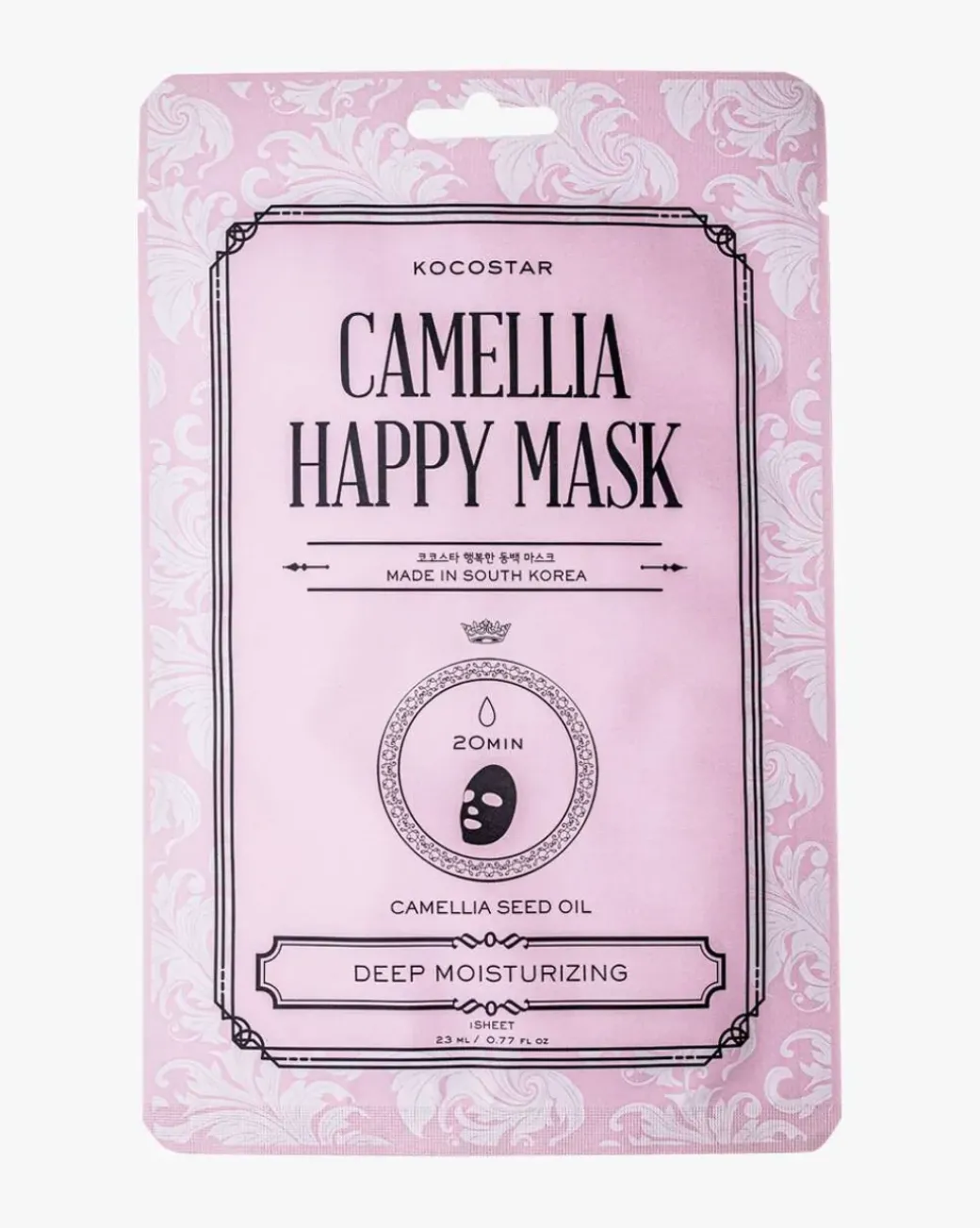 Kocostar Camellia Happy Mask er en fantastisk sheet mask som effektivt fukter og pleier huden. Masken inneholder camellia-blomstolje, som gir langvarig fuktighet og effektivt balanserer huden.