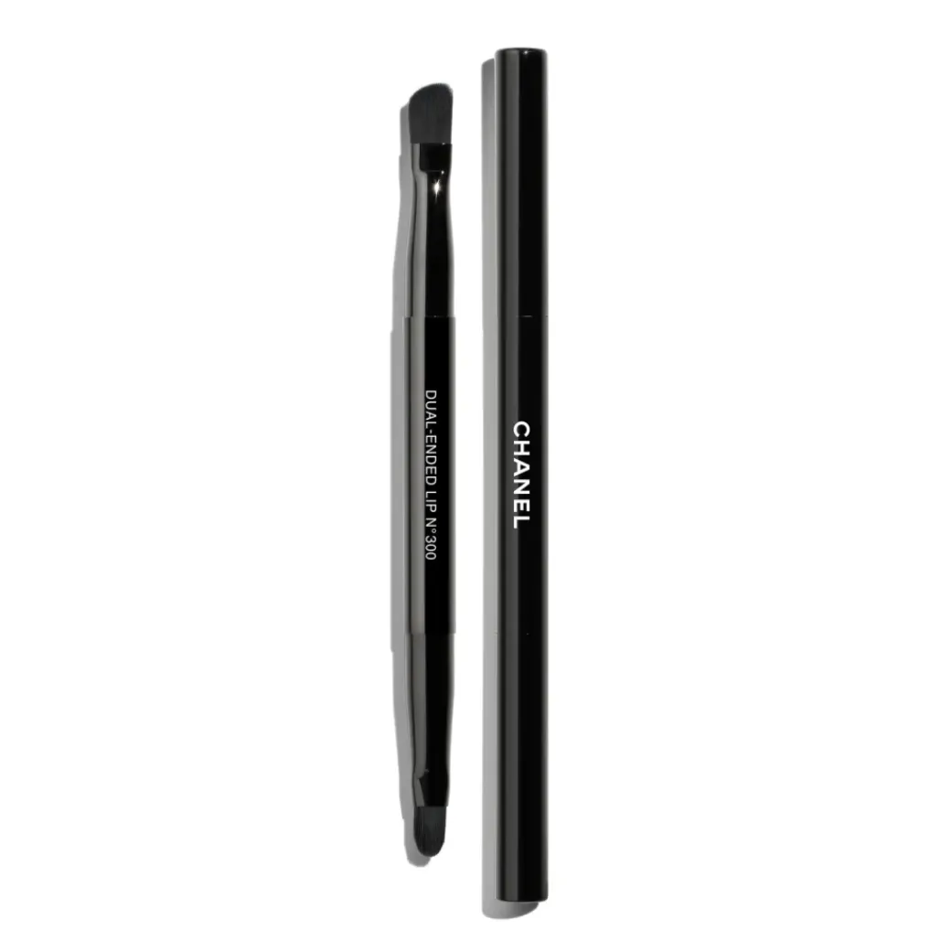 LES PINCEAUX DE CHANEL kostene gir alle tilgang til makeupartist teknikker. Deres enkle, men funksjonelle design gjør dette til en kolleksjon av ønskelig tilbehør på farten. Med et utvalg av syntetisk bust som er like myke som de er spenstige, beskyttet av et sortlakkert etui, bevares de elegant over tid. DUAL-ENDED LIP BRUSH er designet for presis, ekspertlignende påføring av leppestift. Den avsmalnende enden definerer leppekonturen, mens den runde enden fargelegger leppene.