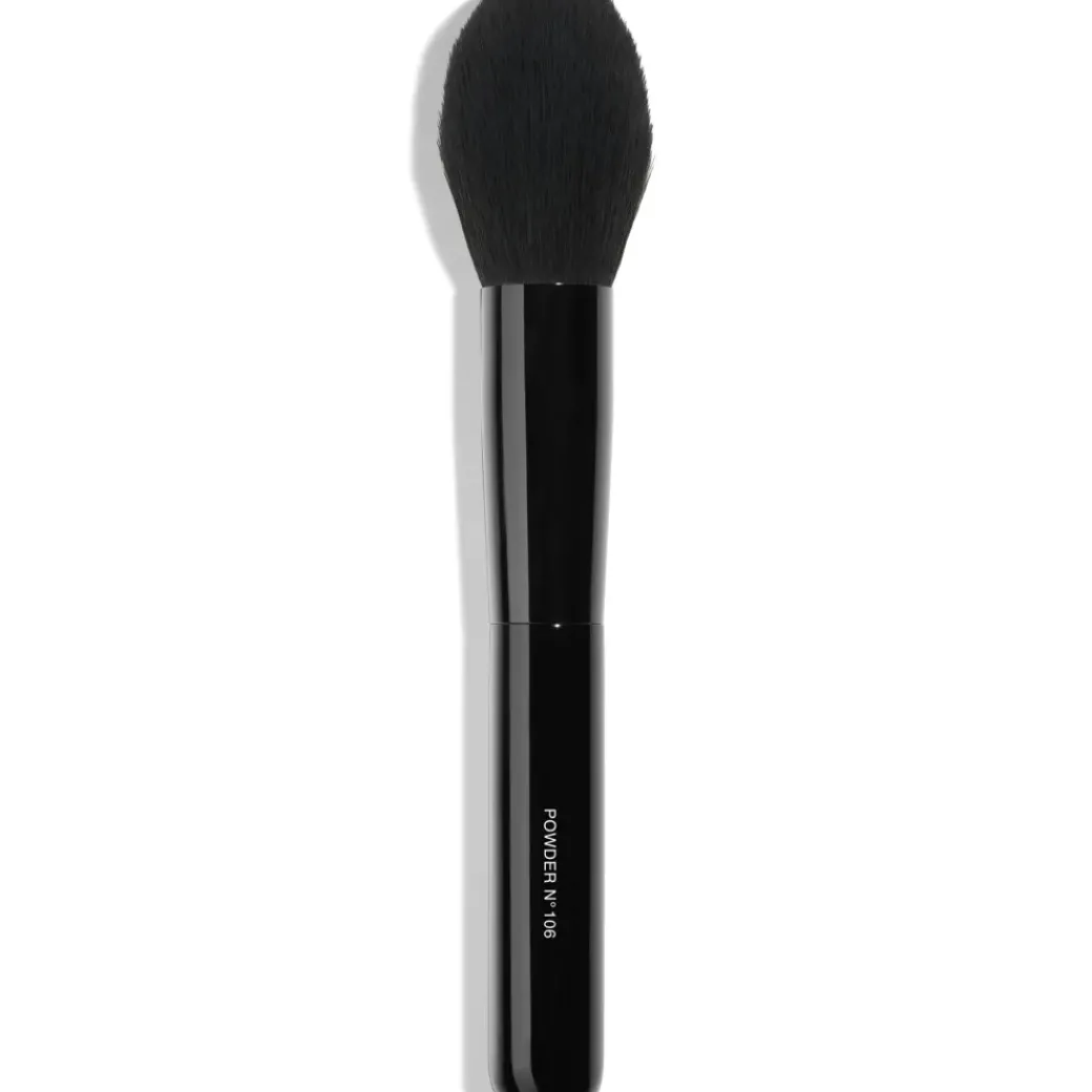 LES PINCEAUX DE CHANEL kostene gir alle tilgang til makeupartist teknikker. Deres enkle, men funksjonelle design gjør dette til en kolleksjon av ønskelig tilbehør på farten. Med et utvalg av syntetisk bust som er like myke som de er spenstige, beskyttet av et sortlakkert etui, bevares de elegant over tid. POWDER BRUSH er det essensielle verktøyet for å påføre pudder lett for å matte ansiktet jevnt. Dens fulle form er designet for å perfekt tilpasse seg ansiktets kurver.