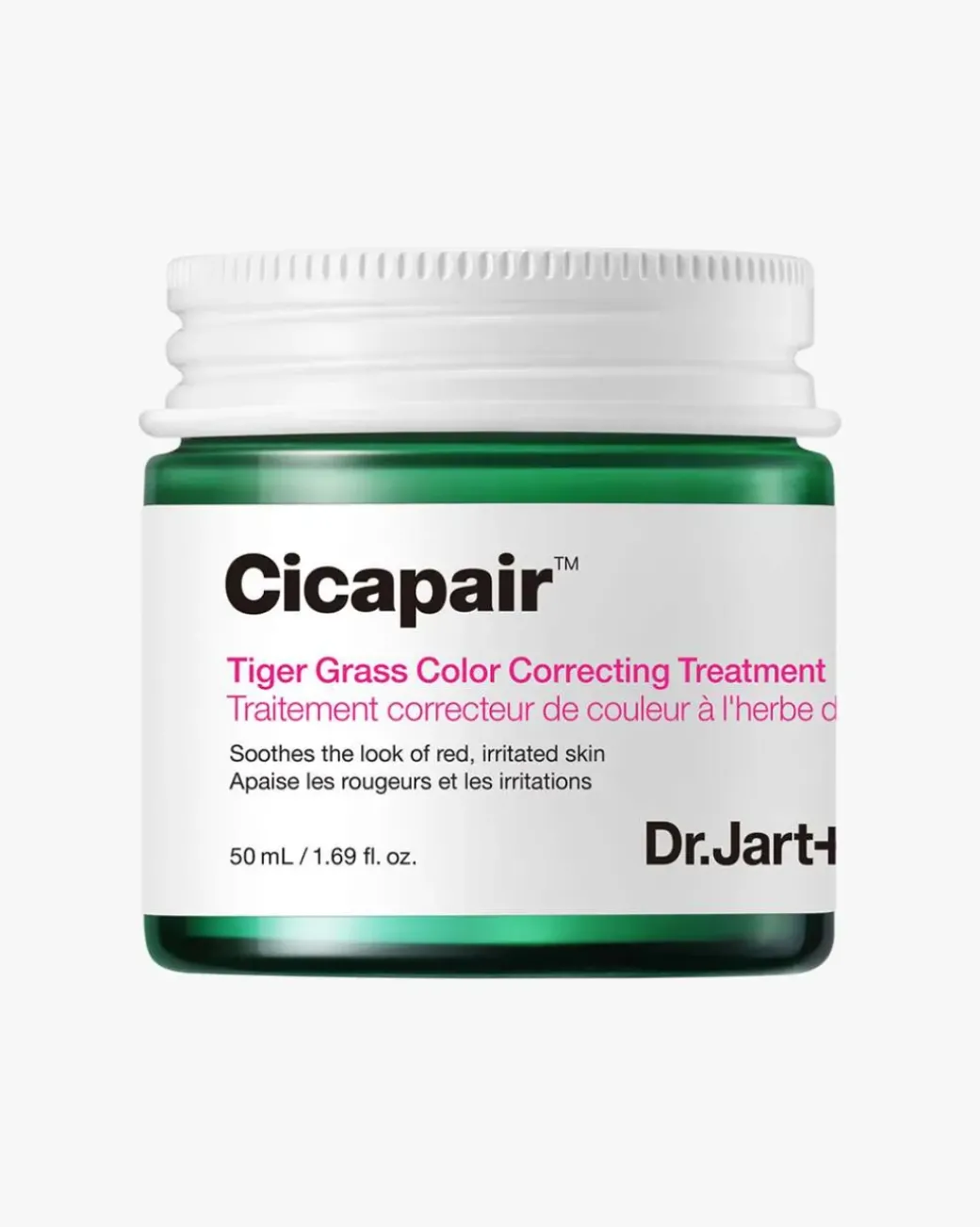 Dr.Jart+ Cicapair™ Tiger Grass Color Correcting Treatment er en grønn-til-beige fargekorrigerende behandling som retter opp rødhet og beskytter mot skadelige miljøfaktorer. Denne alt-i-ett behandlingen inneholder en kapsel som endrer farge for å dekke over flekker, nøytralisere rødhet og oppfriske sliten hud for å gi en levende look.