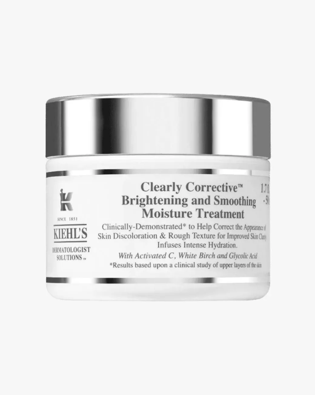 Kiehl’s Clearly Corrective Brightening & Smoothing Moisture Treatment er en ultralett fuktighetskrem for deg som har uklar hud. Kremen løser tre grunnleggende årsaker til tap av klarhet i huden, nemlig grov tekstur, dehydrering og misfarginger i huden. Den inneholder glykolsyre sammen med aktiv C-vitamin i en nøye tilpasset mengde og er velegnet til følsom hud.