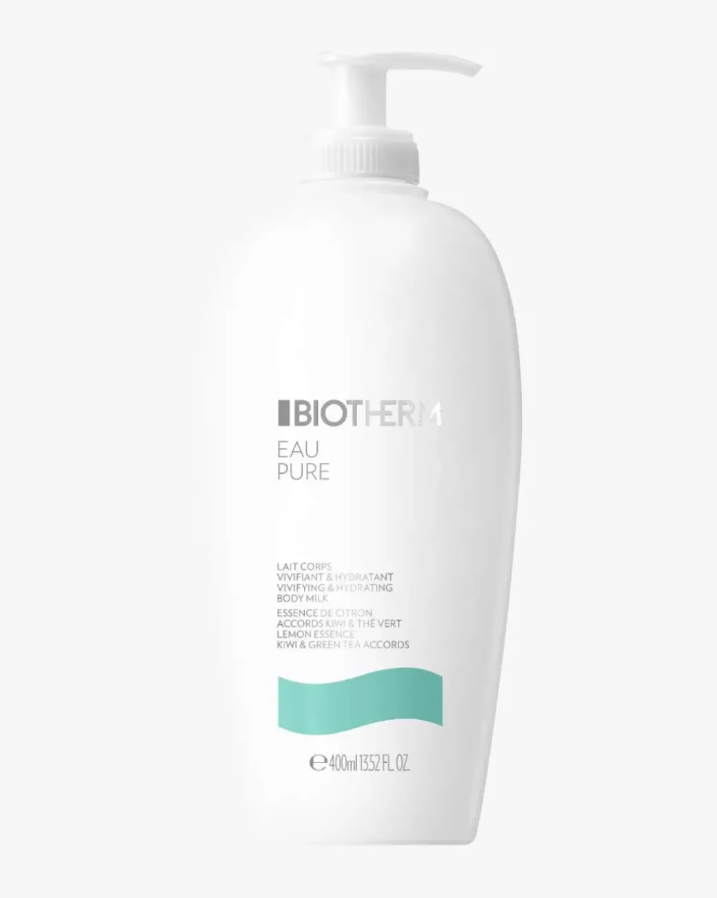 Biotherm Eau Pure Body Milk er en fuktighetsgivende lotion til kroppen som kan brukes til alle hudtyper. Denne fuktighetsgivende lotion har en ren duft og etterlater huden intenst næret og glatt, uten å etterlate fete rester. Den friske duften signaliserer velvære, overskudd og glede.