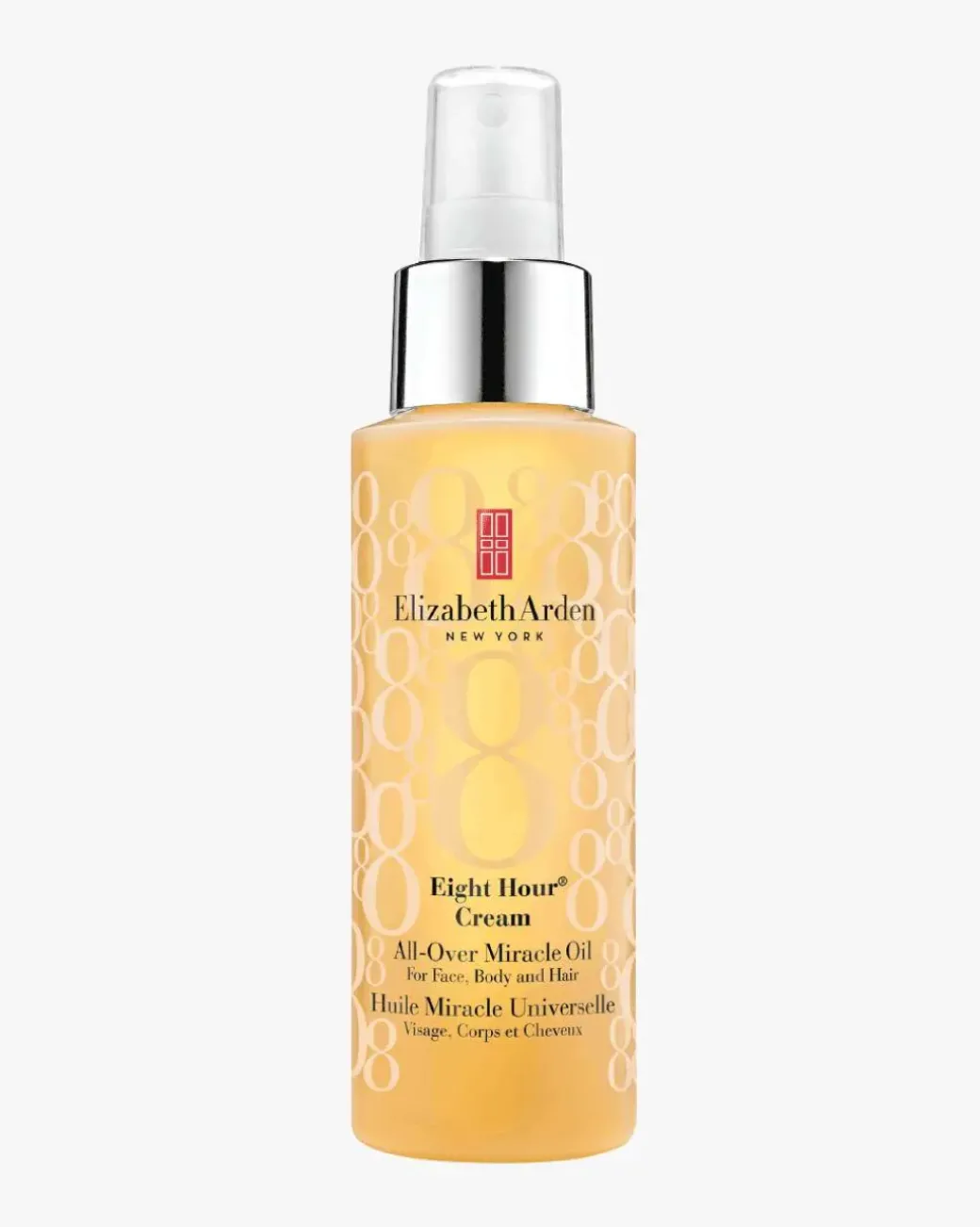 Elizabeth Arden Eight Hour All-Over Miracle Oil er en fantastisk blanding av fuktighetsgivende ingredienser, inkludert Tsubaki Oil, som kan brukes både i ansiktet, på kroppen og i håret. Det er klinisk bevist at den tilfører fuktighet i opptil 12 timer, og etterlater huden behagelig, glatt og strålende. Oljen gjør huden myk uten å etterlates fet. Håret gjenvinner sin fuktighet og glans med en frisk, floral sitrusduft.