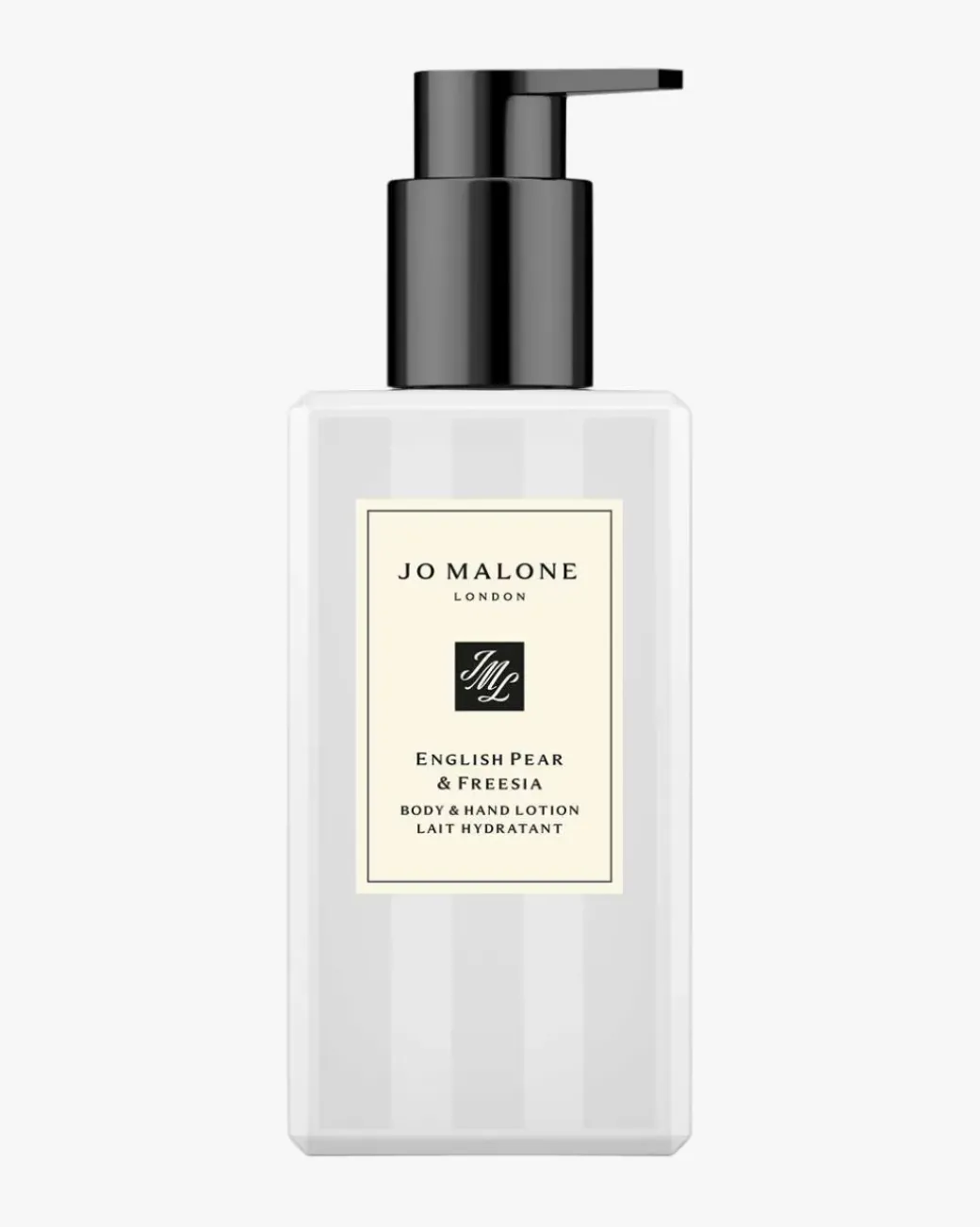 Jo Malone London English Pear & Freesia Body & Hand Lotion har en lett tekstur og en luksuriøs duft. Den sensuelle friskheten av pærer som akkurat er modnet er pakket inn i en bukett av hvit fresia, og dempet med rav, patsjuli og tre. Saftig og gyllen. Body & Hand Lotion absorberes raskt og fukter godt, for en duggfrisk og delikat duftende hud.