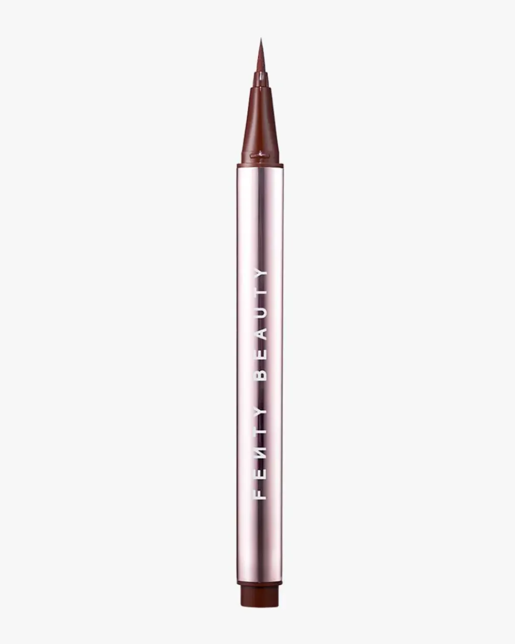 Fenty Beauty Flyliner Longwear Liquid Eyeliner gir deg alt du ser etter i en eyeliner – og litt til. Opplev en intens farge og smidighet som tørker raskt og holder hele dagen. Med en smart triangelformet flakong er produktet enkelt å jobbe med, og gir den perfekte dramatiske looken, helt uten stress. Den eksklusive Fenty Beauty superflex-spissen gir en jevn strek uansett vinkel, og har en superpigmentert satinfinish. Rihanna perfeksjonerte Flyliner-tuppen med ett mål: At den skulle passe til alle ansikt og alle øyeformer. Skap tynne linjer, tykke linjer eller cat-eyes. Det er helt opp til deg!