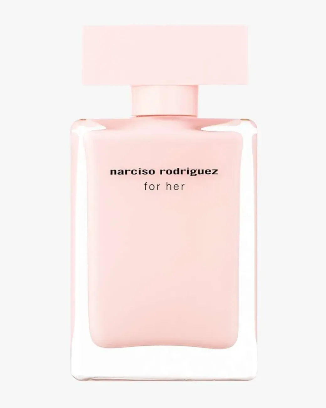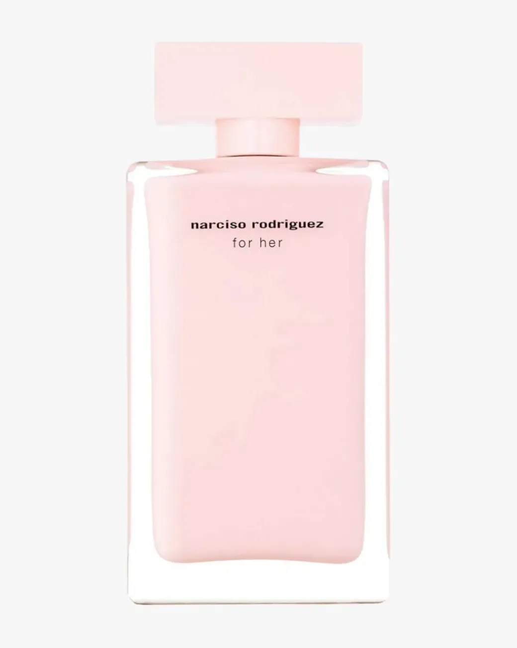 Narciso Rodriguez For Her Eau de Parfum er en elegant, sensuell, mysteriøs og lystig duft. Narciso’s signatur – et hjerte av musk blir forsterket av rose og fersken-, rav-, og patchoulinoter. Flasken er av tykt glass som fremhever det rosa interiøret og kommer i en dyp-svart eske.