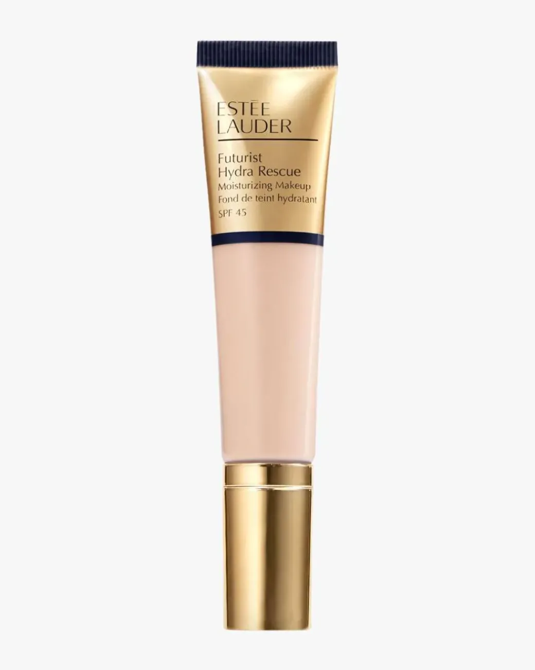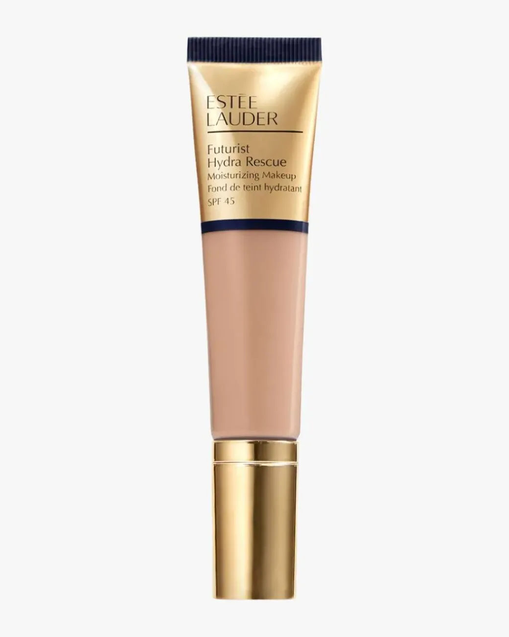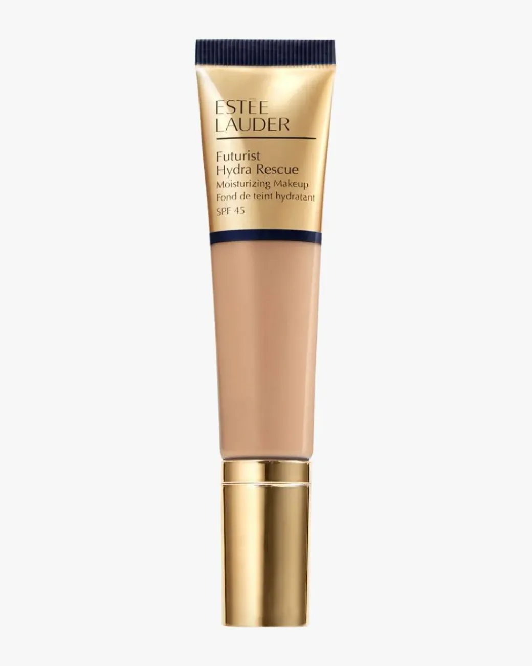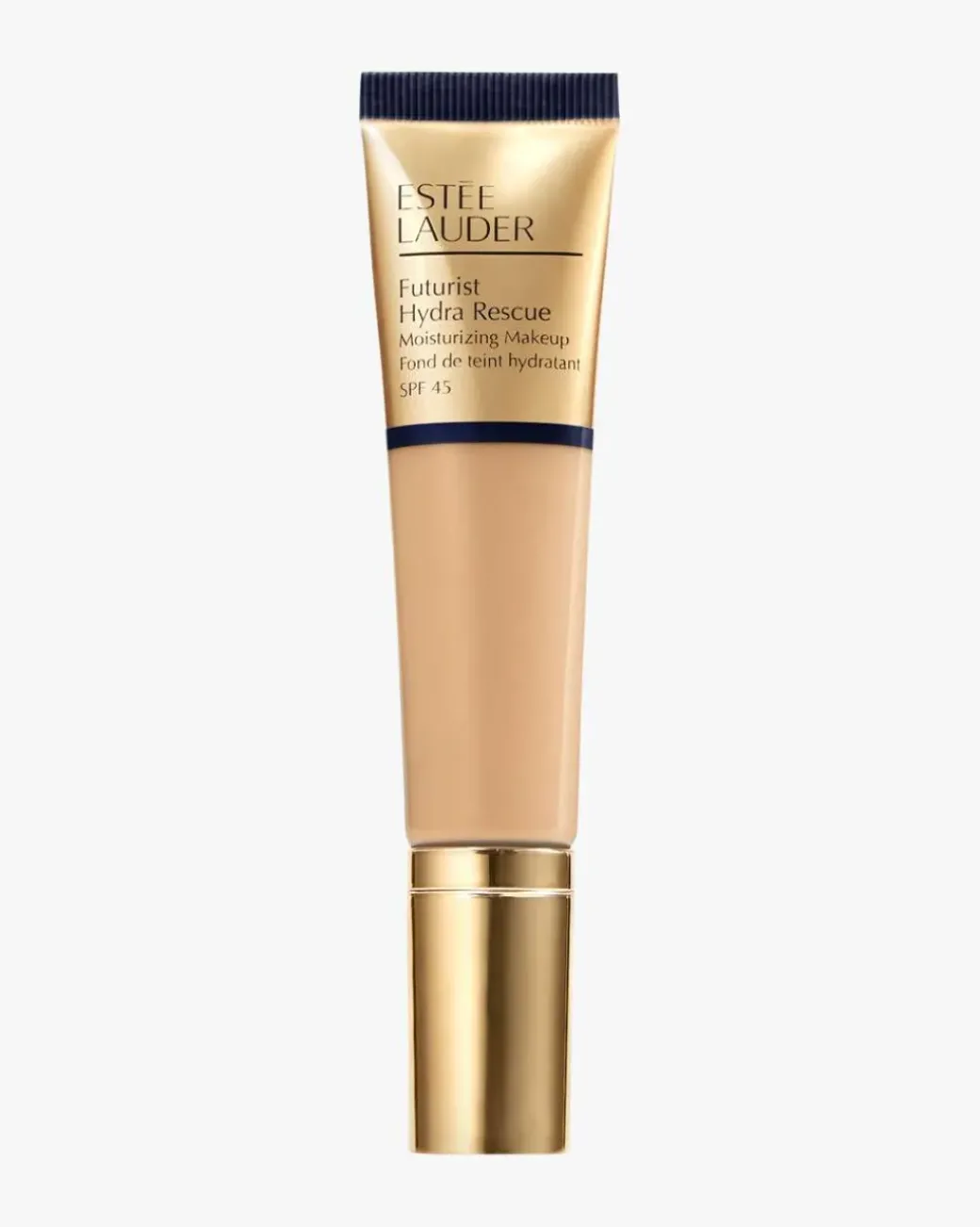 Estée Lauder Futurist Hydra Rescue SPF 45 er drevet av effektiv hudpleie fra Estée Lauder. Full dekning, pustende, hudelskende makeup som gir huden glød i opptil 12 timer. Fuktighetsgivende makeup som er tilsatt IonCharged Water, Probiotic Technology og chiafrøekstrakt. De kliniske testene viser at produktet lindrer synlig rødhet og irritasjon. Beskytter huden mot forurensning med antioksidanter, samt fukter umiddelbart og gjennom hele dagen. Det er et makeup produkt som ser naturlig ut og lyser opp huden med en umiddelbart strålende glød som holder hele dagen. Bredspektret UVA-/UVB-beskyttelse.