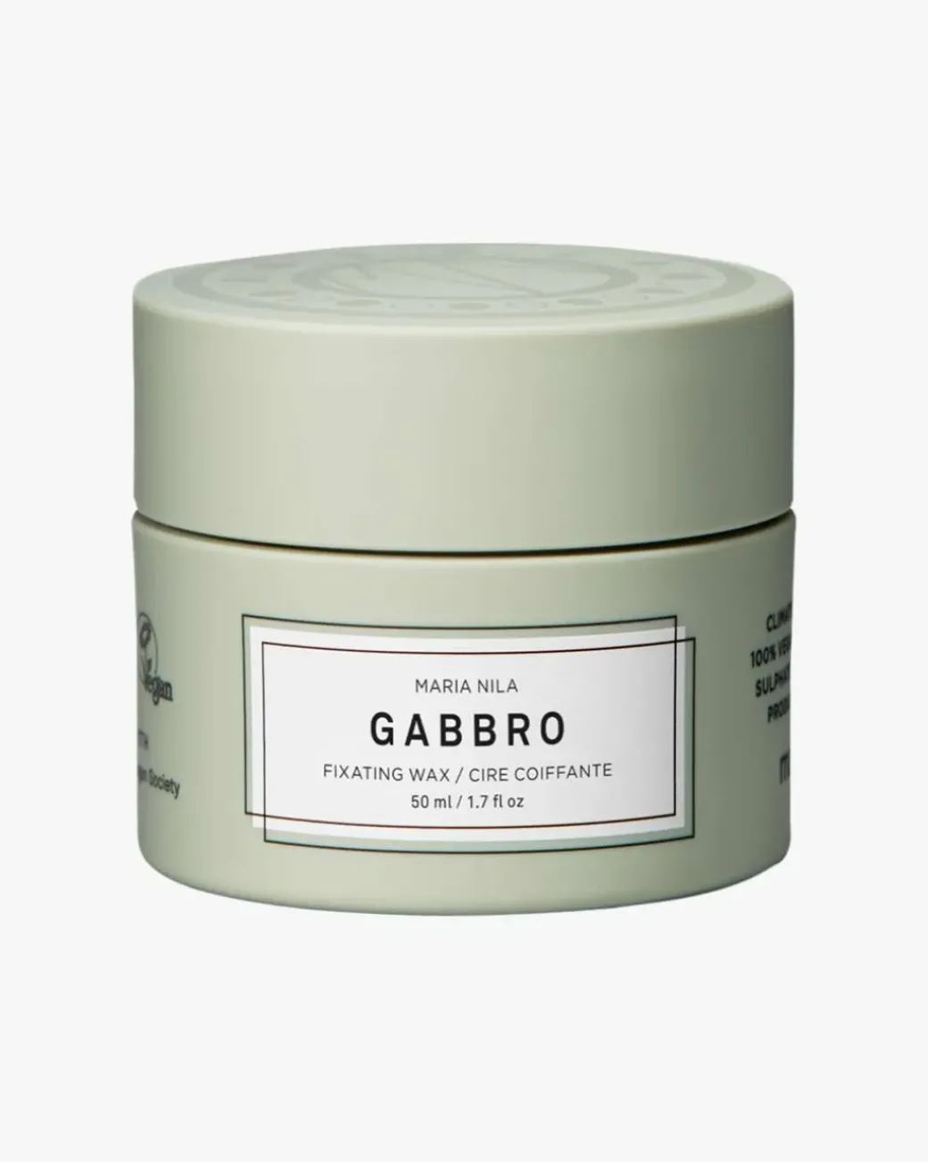 Maria Nila Gabbro Fixating Wax er en hurtigtørkende fikseringsvoks med sterkt hold og mild glans for korte frisyrer.