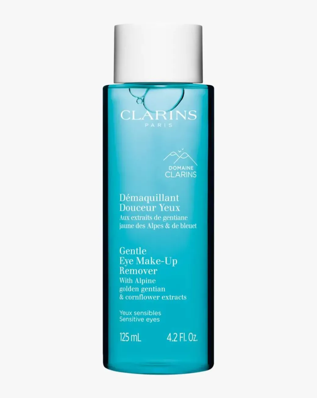 Clarins Gentle Eye Make-Up Remover er en øyesminkefjerner som er spesielt utviklet for sensitive øyne. Den fjerner sminke og urenheter både perfekt og skånsomt, samtidig som den beroliger øyelokkene. Formulert med økologisk ekstrakt av alpinsk gul gentian, som er dyrket i hjertet av Domaine Clarins, og økologisk kornblomstekstrakt, er denne sminkefjerneren ideell for å berolige huden rundt øynene. Den er særlig velegnet for det skjøre området rundt øynene. Beriket med panthenol, bidrar den også til å beskytte og styrke øyevippene.