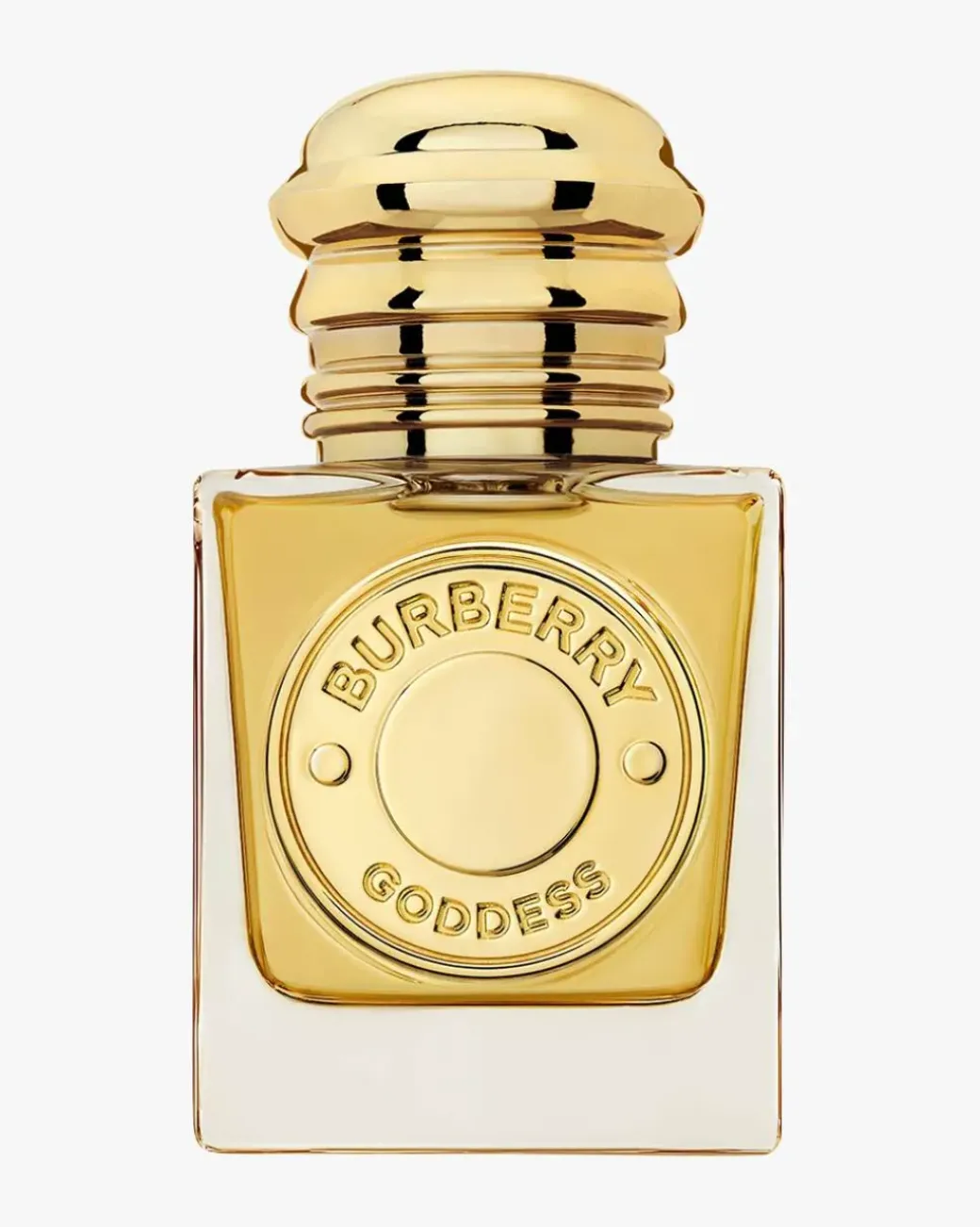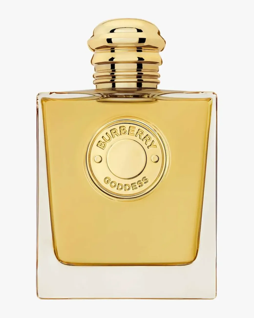 Burberry Goddess Eau de Parfum Intense er inspirert av solnedgangens farger, og den er plassert i en firkantet flaske fylt med en lett ravfarget duft og dekorert med en gyllen medaljong. Mørk beige emballasje med en gabardin-inspirert gulletikett refererer til merkevarens arv.