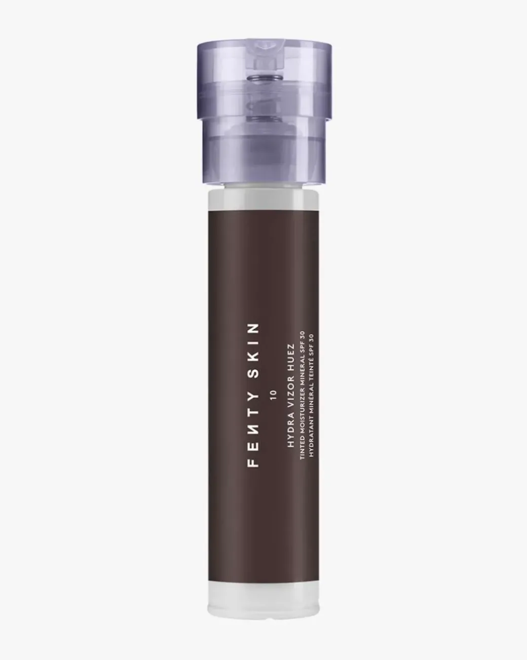 Fenty Skin Hydra Vizor Huez Tinted Moisturizer Broad Spectrum Mineral SPF30 er en farget fuktighetskrem tilsatt SPF. Den fyller huden med fuktighet, forbedrer elastisiteten og reduserer synlig porer og mørke flekker. Hver av de 10 fleksible nyansene har en naturlig, glødende finish med det perfekte nivået av pigment for å takle ujevnheter. I tillegg er den gjenfyllbar.