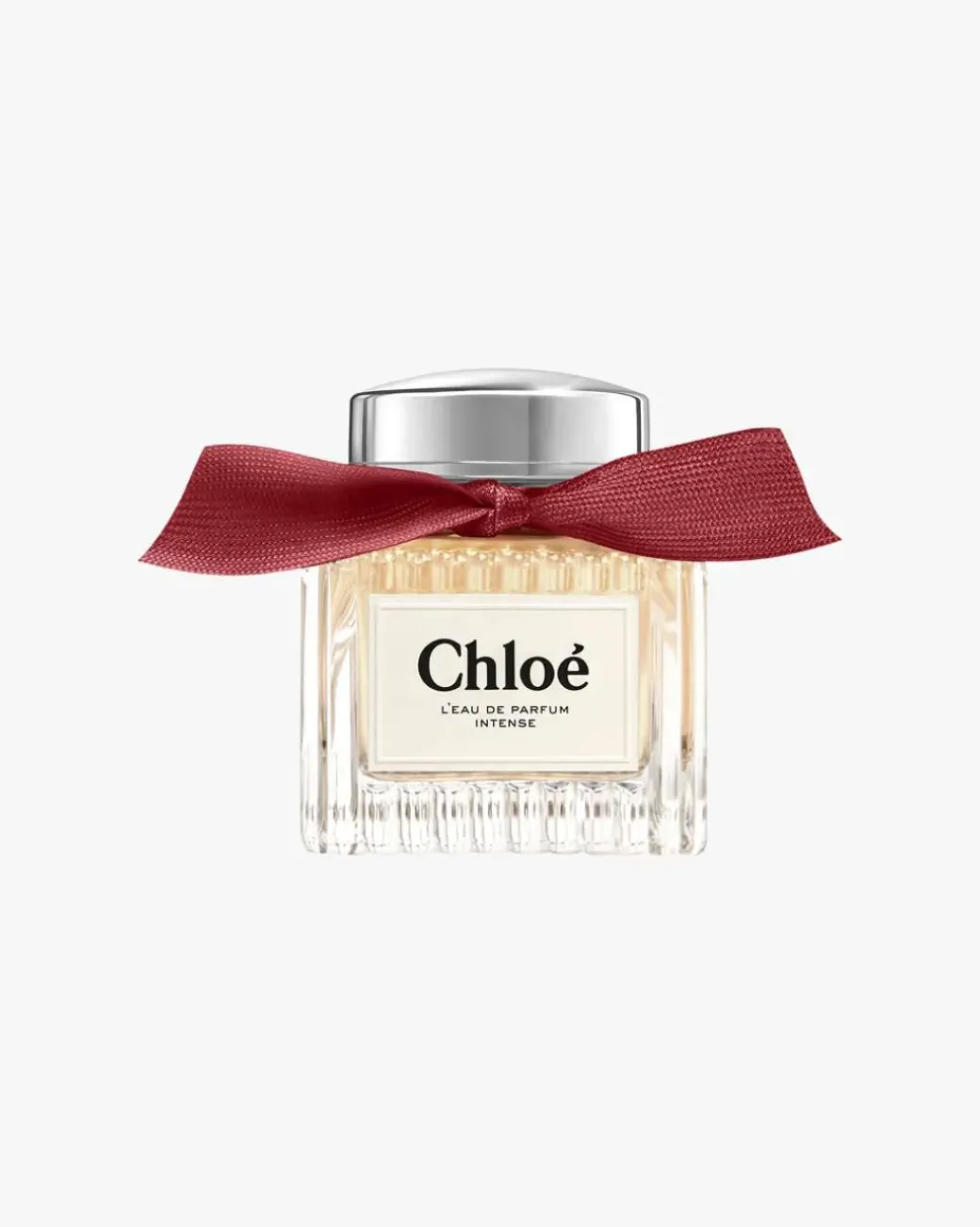For L’Eau de Parfum Intense har den berømte plisserte Chloé-parfymeflasken fått et nytt utseende, nå stemplet med en elegant svart og grågul etikett for en enda mer moderne og raffinert stil. Båndet har også fått en ny, dyp granatfarge, som gjenspeiler duftens komposisjon og blomsten i hjertet.