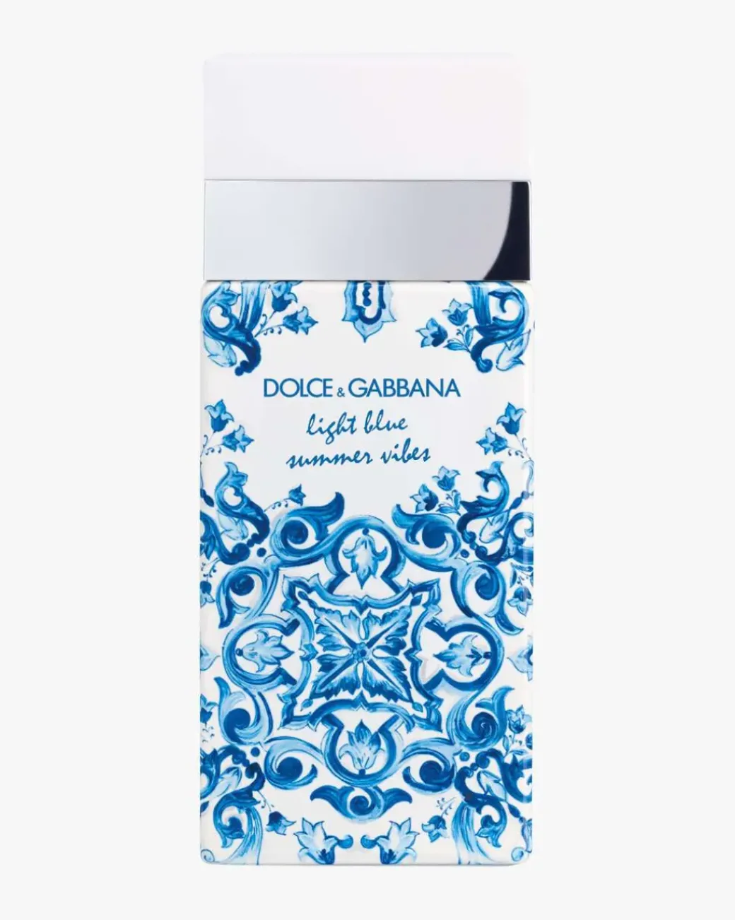 Dolce & Gabbana Light Blue Summer Vibes Eau de Toilette fanger drømmen om en romantisk flukt til Capri. Den ikoniske Light Blue duften er forsterket med den friske touchen av bergamot fra Kalabria sammen med sødmen av frukter og den beroligende touchen av trenoter. Designet av Light Blue Summer Vibes Eau de Toilette gjenspeiler gleden av sommeren i en rektangulær glassflaske kledd i det ikoniske majoikamønsteret og pyntet med en hvit cap.