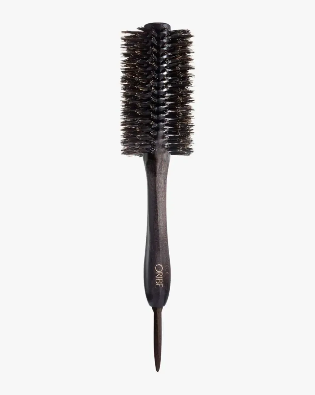 Oribe Medium Round Brush. Denne signaturbørsten er laget i europeisk bøketre og kombinerer håndverksdesign med ergonomiske håndtak for perfekt grep og balansert vekt. Alle børster er lakkert for hånd. Selve børsten kommer i en blanding av høykvalitets villsvin og nylonbust med en naturlig gummipute. Busten og nylonavrundede endene stimulerer delikat hodebunnen og polerer håret for en ultra-elegant, skinnende finish. Laget i Italia.